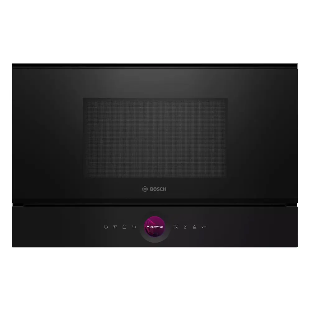 Стильная и функциональная микроволновая печьМикроволновая печь Bosch BFR7221B1 выполнена в черном цвете, поэтому органично впишется в любой кухонный интерьер. Для монтажа прибора потребуется ниша в мебели размером 36,2-38,2х56-56,8х30 см. Особенности конструкцииПолезный объем камеры составляет 21 л. В этой модели нет поворотного блюда — распределитель волн интегрирован под нижней поверхностью. Это обеспечивает более простую и легкую очистку стенок и равномерный нагрев. Дверца из закаленного стеклаФронтальная панель сделана из закаленного стекла, поэтому не боится механических повреждений. Для открытия используется специальная клавиша, дверной упор размещен справа. Удобный функционалBosch BFR7221B1 заложены семь автоматических программ. Кроме этого, предусмотрены режимы «Размораживание», «Доведение до готовности». Время можно настроить в зависимости от веса блюда или продукта. Современное управлениеНастройки выбираются с помощью удобного сенсорного колеса. Заданные параметры отображаются на TFT-дисплее. В микроволновку интегрированы часы. По окончании приготовления раздастся звуковой сигнал.