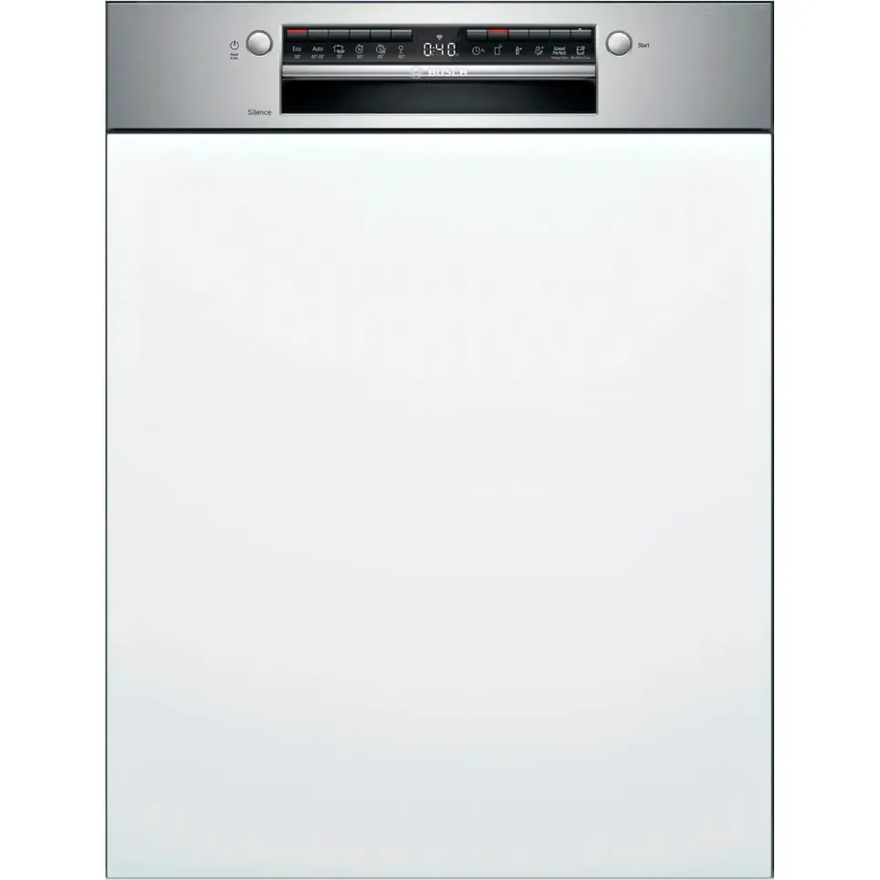 Вместительное устройствоВстраиваемая посудомоечная машина Bosch SMI4IMS62T — оптимальный вариант для большой семьи. За один раз в приборе можно обработать до 14 комплектов посуды. Разнообразные режимыВ эту модель заложены шесть автоматических программ с температурой нагрева воды от 45°С до 65°С. Таймер позволяет установить запуск машины на удобное время сроком от 1 часа до суток. Об окончании процесса сообщает звуковой сигнал. Удобное управлениеBosch SMI4IMS62T оснащена открытой электронной панелью для выбора настроек. Необходимая информация отображается на дисплее. Светодиодные индикаторы показывают наличие ополаскивателя и соли. Технология Home Connect позволяет удаленно управлять, проводить диагностику и устанавливать новое программное обеспечение. Оптимальное оснащениеДля размещения посуды используются три корзины, самая верхняя подходит для столовых приборов, ее высоту можно менять. Для чашек есть две полочки. В машине можно разместить бокалы высотой до 25 см и тарелки диаметром до 30 см. Предусмотрена зона для интенсивной обработки — в нижней части вода подается под высоким давлением и более горячей.