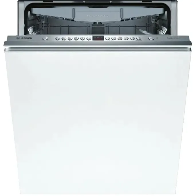 Полноразмерная посудомоечная машинаПосудомоечная машина Bosch SMV46KX55E шириной 59,8 см рассчитана на единовременную загрузку 13 комплектов. Для монтажа модели необходима ниша размером 59,8x55x81,5 см. Стабильную работу устройства обеспечивает инверторный двигатель EcoSilence Drive. Широкий выбор настроекЭта модель оснащена электронным блоком управления с кнопками и дисплеем. В память заложены шесть стандартных программ, температура воды регулируется на пяти уровнях. Предусмотрены деликатный, быстрый, интенсивный режимы, прибор можно использовать при половинной загрузке с оптимальным расходом воды и моющих средств. Можно подобрать индивидуальные настройки и занести их в память. Уход без лишних усилийВ посудомоечной машине Bosch SMV46KX55E реализована технология Machine Care — для очистки камеры достаточно поместить внутрь специальное средство и запустить программу. Умные технологииВ прибор встроены инновационные сенсоры, которые оптимизируют расход воды в соответствии с выбранным режимом, загрузкой и степенью загрязнения посуды. Предусмотрена опция самоочистки фильтра. Луч на полу дублирует время до окончания программы. Удобная комплектацияДля размещения посуды используются три корзины, высоту верхней можно менять. Тарелки удерживаются с помощью складных направляющих, для чашек сделаны две полочки. Никаких рисковВ машине реализована полная защита от протечек AquaStop, которая предотвращает залив помещения при возникновении аварийной ситуации.