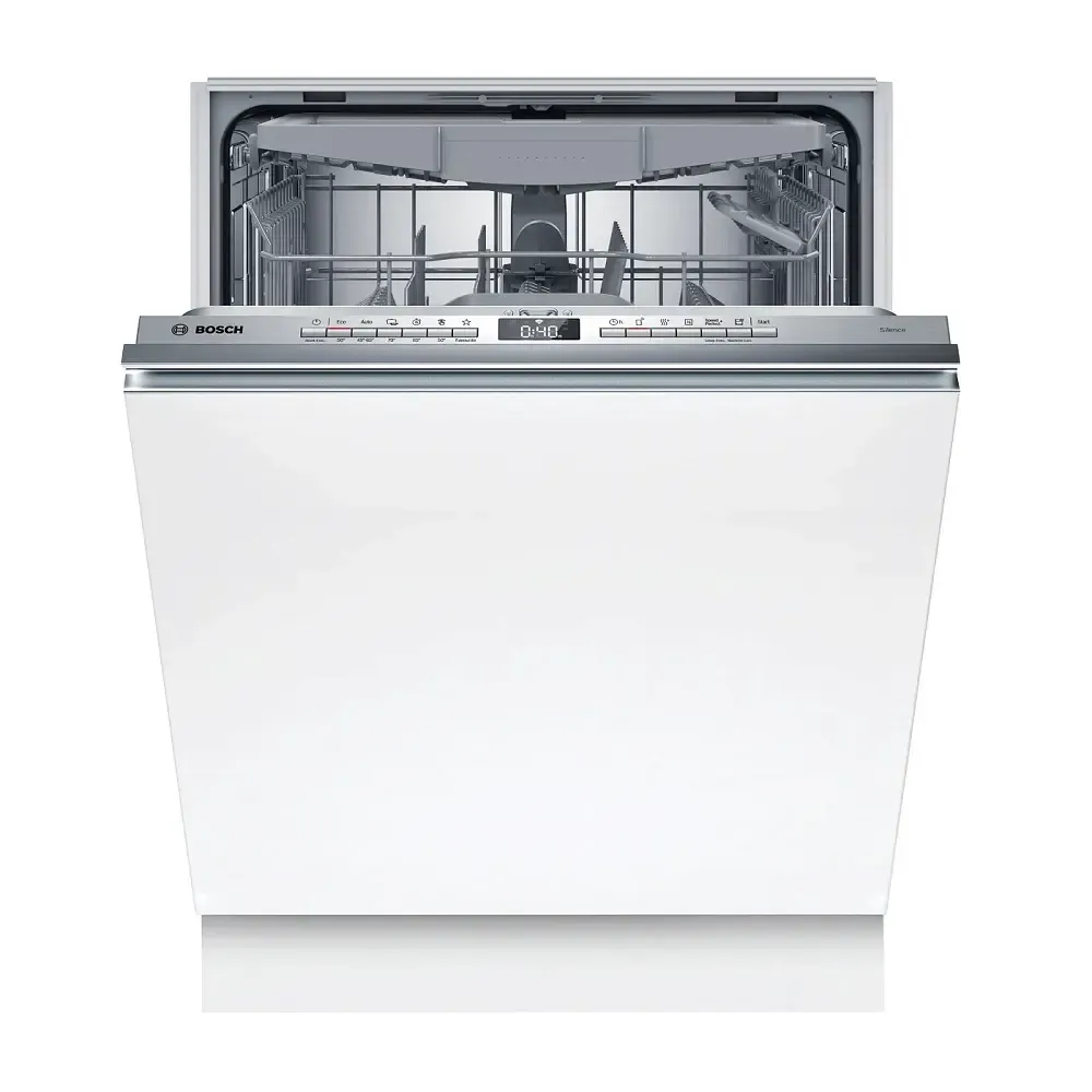 Эффективный помощник на кухнеПосудомоечная машина Bosch SMV4HVX03E — полноразмерная модель, которая рассчитана на единовременную обработку до 13 комплектов посуды. Электронное управлениеПрибор оборудован закрытой кнопочной панелью с дисплеем, на котором отображаются индикаторы наличия соли и ополаскивателя, время до окончания программы. При синхронизации со смартфоном старт машины можно активировать удаленно через приложение. Таймер отложенного старта устанавливается сроком до 24 часов. Для разной посуды разные режимыВ машину Bosch SMV4HVX03E заложены автоматические программы, позволяющие выбрать оптимальных в зависимости от степени загрязнения. Есть возможность сформировать индивидуальную и сохранить в памяти устройства. Технологии Extra Dry, HalfLoad и SpeedPerfect Plus позволят сократить время мойки без потери эффективности. Режим Machine Care предназначен для очистки камеры после использования. ОснащениеПосуда размещается в трех корзинах. Верхняя оснащена системой Rackmatic, благодаря которой высоту даже наполненного короба можно изменить без лишних усилий. Для чашек предусмотрена отдельная полочка. В приборе применяется экстра-сушка с помощью теплообменника.