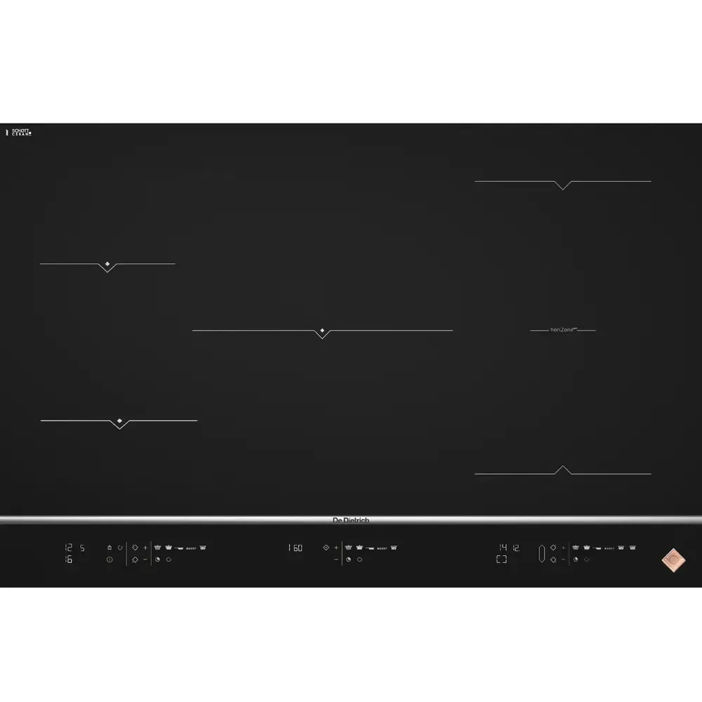 - 5 независимых зон приготовления с 1 зоной horiZone: horiZone 40 х 23 см / 3700 Вт; центральная зона 28 cм / 4000 Вт; левая задняя зона 16 cм / 2400 Вт; левая передняя зона 18 cм / 2800 Вт - Автоматическое распознавание посуды - 20 уровней мощности - 5 функций Booster / 5 функций «Таймер» - 4 элемента управления прямого доступа, включая Boost - 3 функции: «Кипячение», «Истекшее время», «Память при отключении» - Общая мощность: 7400 Вт