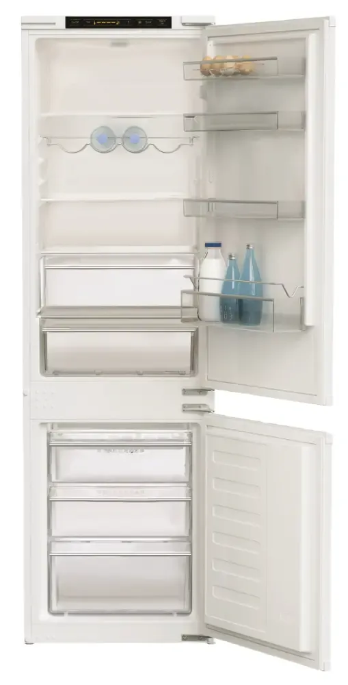 Оснащение: - Скользящее крепление двери - Электронная система регулировки температуры с сенсорными кнопками - Дизайн SilverLine - Функция FastCooling с автоматическим отключением - Звуковая сигнализация - Регулируемые полки/регулируемые ящики - Хромированная полка для бутылок - Прозрачные контейнеры для замораживания - Полезный объем 271 л из них холодильная камера 193 л морозильная камера 78 л - Изменяемая навеска двери - Макс. угол открытия двери 90° Технические данные: - Энергопотребление в год225 кВт/ч - Производительность замораживания3,6 кг/24 ч - Хранение при отключении электроэнергии20 ч - Размеры прибора Ш х В х Г 540 х 1775 х 545 мм - Размеры ниши Ш х В х Г 560 х 1778 х 555 мм - Уровень шума35 дБ