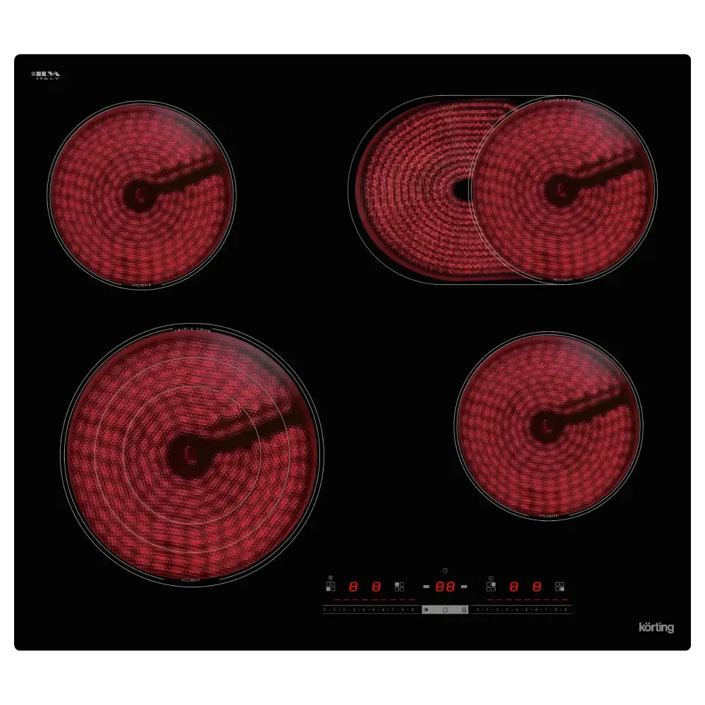 Korting предлагает сенсорное управление варочных поверхностей нового поколения. Просто проведите пальцем по шкале сенсорного дисплея, чтобы выбрать нужную температуру или сразу нажмите на нужный вам режим. Вы можете полностью контролировать процесс приготовления всего одним нажатием на сенсор, теперь управление варочной панелью стало легким и понятным.
