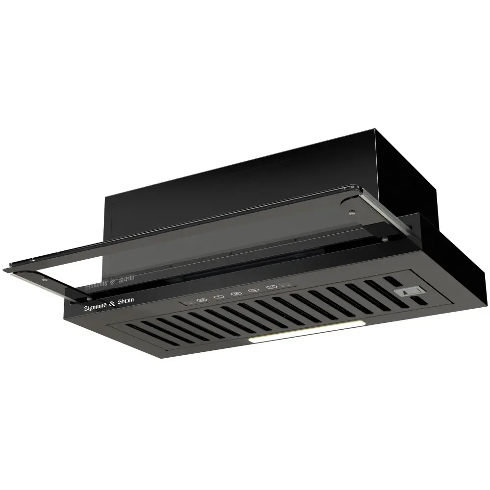 Встраиваемая телескопическая вытяжка Ширина: 60 см Цвет: чёрный ОБЩИЕ ПАРАМЕТРЫ 3 скорости работы Сенсорное управление + управление жестом Таймер Производительность: 750 м3/час Мощность мотора -145 Вт Уровень шума: 52 дБ Освещение: диодная подсветка, 1 х 4 Вт Диаметр воздуховода – 150 мм Стальной жироулавливающий фильтр, можно мыть в п/м Выдвижная стеклянная панель