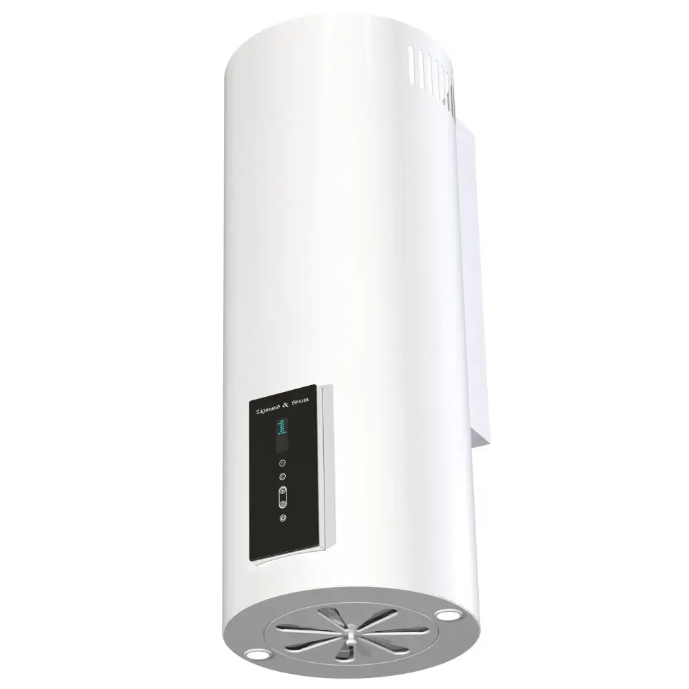 Каминная кухонная вытяжка Ширина: 35 см Цвет: белый ОБЩИЕ ПАРАМЕТРЫ 3 скорости работы Сенсорное управление + управление пультом Таймер Производительность: 1100 м3/час Мощность мотора -245 Вт Уровень шума: 60 дБ Освещение: диодная подсветка, 2 х 5 Вт Диаметр воздуховода – 150 мм Стальной жироулавливающий фильтр