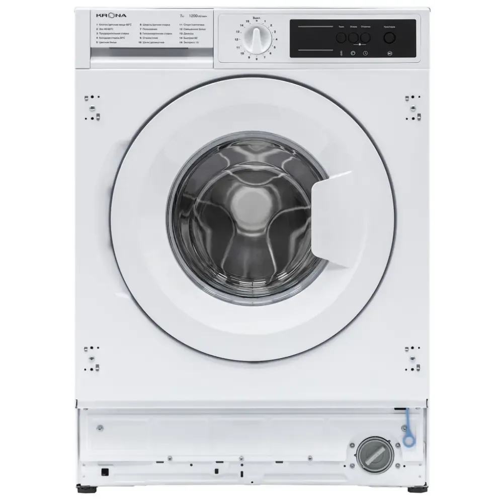 Встраиваемая стиральная машина KAYA объемом загрузки 7 кг оснащена 15 программами стирки для разных типов белья. Модель предусматривает настройку скорости отжима до 1200 об/мин, а также регулировку температур стирки в диапазоне 20-90 °С. Для вашего удобства в модели предусмотрена функция паузы и отложенный старт на 1-24 часа. Безопасность пользователя обеспечивают такие функции как: блокировка управления от детей, электронная защита от перелива и протечек, контроль пенообразования. Стиральная машина KAYA отличается высоким классом энергоэффективности А++, благодаря которому годовое потребление электроэнергии составляет всего 99 кВт.