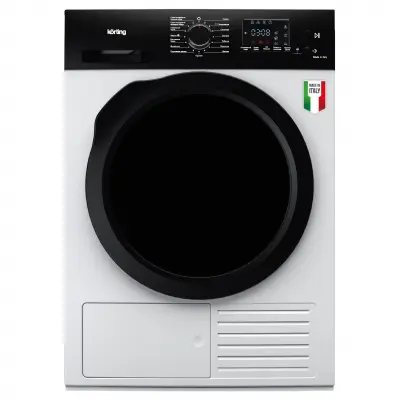 Технология Heat Pump схожа с принципом холодильника, только наоборот: внутри прибора компактно размещаются два важных элемента – горячий и холодный контуры. Задача горячего контура - нагреть воздух, который далее, при помощи вентилятора, попадает в барабан и забирает влагу из мокрых тканей. Второй активный холодный контур эту влагу собирает и отправляет в съемный резервуар. Такая технология позволяет меньше нагревать воздух, что помогает сушить вещи деликатнее и существенно снижать потребление электроэнергии. Температура нагрева тканей не превышает 50°C – вещи не подвергаются лишней термической обработке. Потребление электроэнергии у такого прибора существенно ниже обычных конденсационных аналогов.
