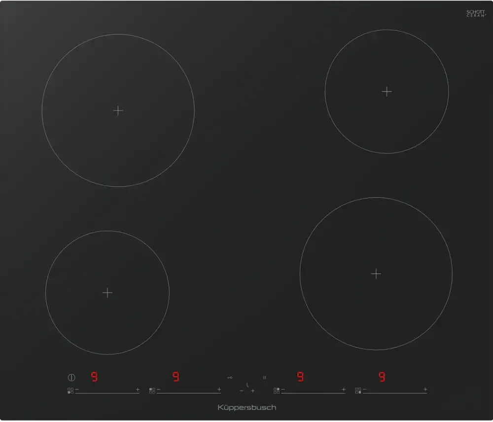 Управление “glideControl+”. 10 уровней мощности. 4 варочные зоны. Оснащение: - 10-ступенчатая регулировка мощности “glideControl+” с красными индикаторами - Индикация остаточного тепла - Таймер с функцией отключения - Централизованное отключение - Принудительное отключение (ограничение продолжительности работы) - 2 варочные зоны 185 мм / 1700 Вт (2100 Вт*) - 2 варочные зоны 150 мм / 1200 Вт (1500 Вт*) * при включении режима «Power» Технические данные: - Потребляемая мощность 7,2 кВт - Размеры прибора Ш х Г 605 х 515 мм - Глубина встраивания 58 мм - Размеры ниши Ш х Г 560 х 490 мм