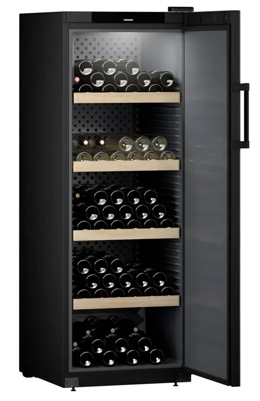 Винный шкаф Liebherr WSbl 5001 GrandCru с полезным объемом 385 литров. Вместимость бутылок благодаря хранению «горлышко к горлышку» 196 бутылок. Шкаф Липхер с глухой дверью доукомплектовывается модулем SmartDevice. Двойная защита: механический дверной замок (устанавливается дополнительно) и трехзначный PIN-код сохранят шкаф от несанкционированного вскрытия и изменения рабочих настроек. Функция HumiditySelect позволяет настроить на дисплее 2 уровня влажности: стандартный и высокий. Металлическая задняя стенка обеспечивает циркуляцию воздуха. Идеальные условия для хранения и созревания вин В винных шкафах поддерживается необходимая влажность воздуха. Защита от вибрации и ультрафиолетового излучения. Поддерживается постоянная температура. При наведении курсора на маркер появляется больше информации о функциях данной модели Liebherr.