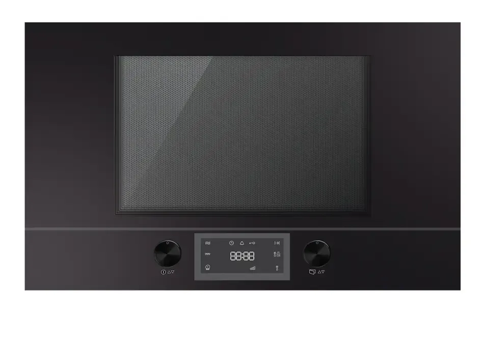 Оснащение: Высота ниши 38см 5 уровней мощности микроволн Мощность микроволн: 850 Вт Гриль: 1200 Вт 14 автоматических программ Управление с помощью высококачественных алюминиевых поворотных переключателей Электронные часы с белым дисплеем Режим ожидания Рабочая камера из нержавеющей стали с керамической тарелкой Подсветка рабочей камеры Возможность выбора стороны навески дверцы (см. модель) Объем: 22 л