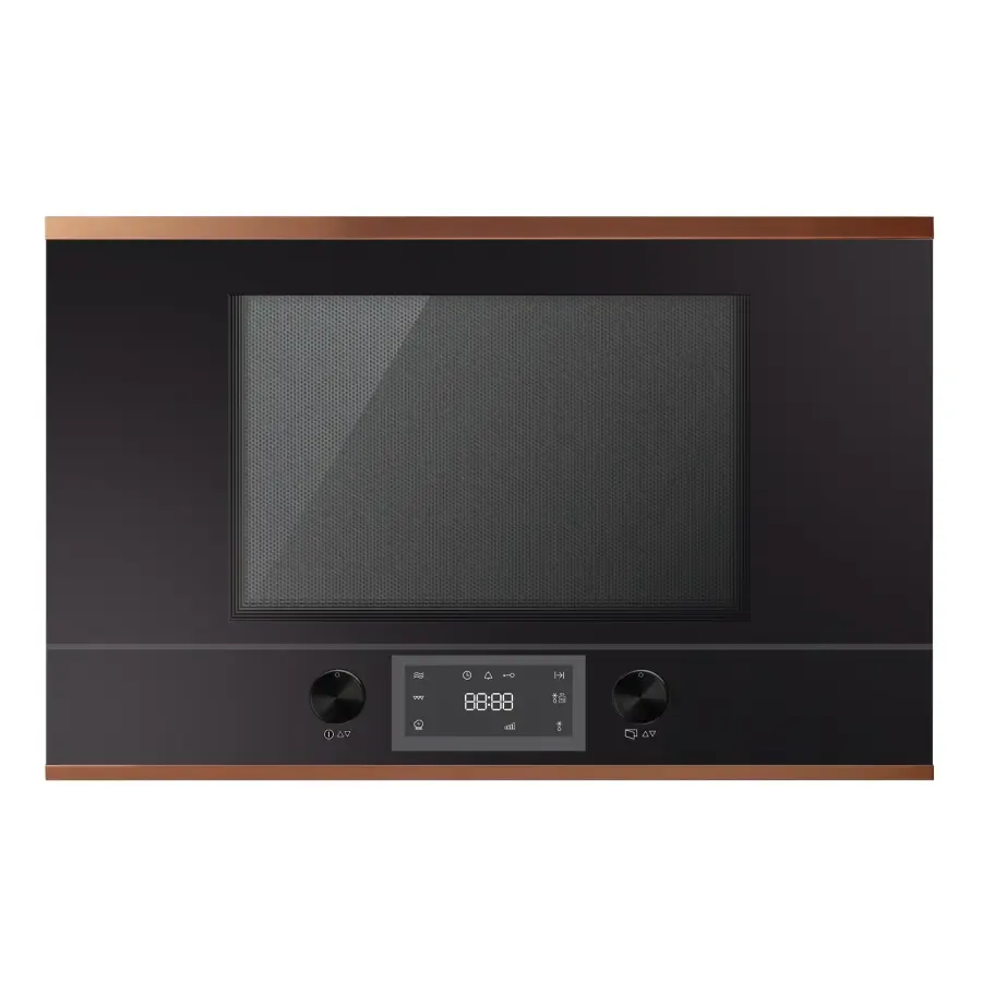Оснащение: Высота ниши 38см 5 уровней мощности микроволн Мощность микроволн: 850 Вт Гриль: 1200 Вт 14 автоматических программ Управление с помощью высококачественных алюминиевых поворотных переключателей Электронные часы с белым дисплеем Режим ожидания Рабочая камера из нержавеющей стали с керамической тарелкой Подсветка рабочей камеры Возможность выбора стороны навески дверцы (см. модель) Объем: 22 л