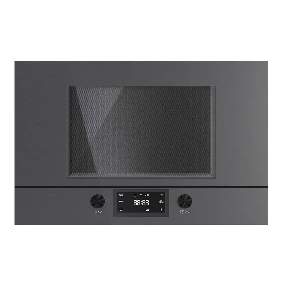 Оснащение: Высота ниши 38см 5 уровней мощности микроволн Мощность микроволн: 850 Вт Гриль: 1200 Вт 14 автоматических программ Управление с помощью высококачественных алюминиевых поворотных переключателей Электронные часы с белым дисплеем Режим ожидания Рабочая камера из нержавеющей стали с керамической тарелкой Подсветка рабочей камеры Возможность выбора стороны навески дверцы (см. модель) Объем: 22 л