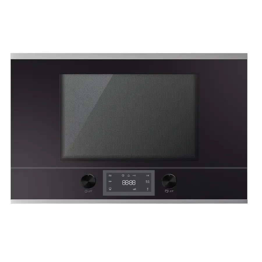 Оснащение: Высота ниши 38см 5 уровней мощности микроволн Мощность микроволн: 850 Вт Гриль: 1200 Вт 14 автоматических программ Управление с помощью высококачественных алюминиевых поворотных переключателей Электронные часы с белым дисплеем Режим ожидания Рабочая камера из нержавеющей стали с керамической тарелкой Подсветка рабочей камеры Возможность выбора стороны навески дверцы (см. модель) Объем: 22 л