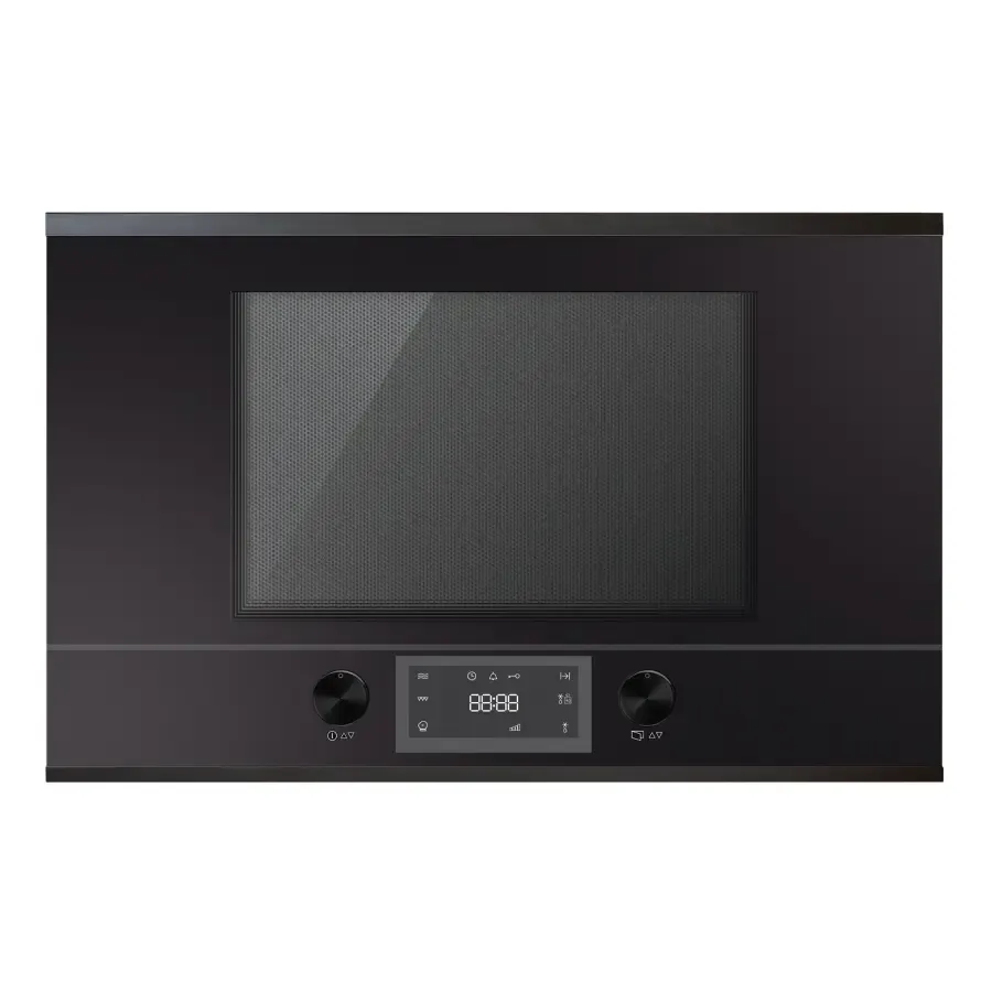 Оснащение: Высота ниши 38см 5 уровней мощности микроволн Мощность микроволн: 850 Вт Гриль: 1200 Вт 14 автоматических программ Управление с помощью высококачественных алюминиевых поворотных переключателей Электронные часы с белым дисплеем Режим ожидания Рабочая камера из нержавеющей стали с керамической тарелкой Подсветка рабочей камеры Возможность выбора стороны навески дверцы (см. модель) Объем: 22 л