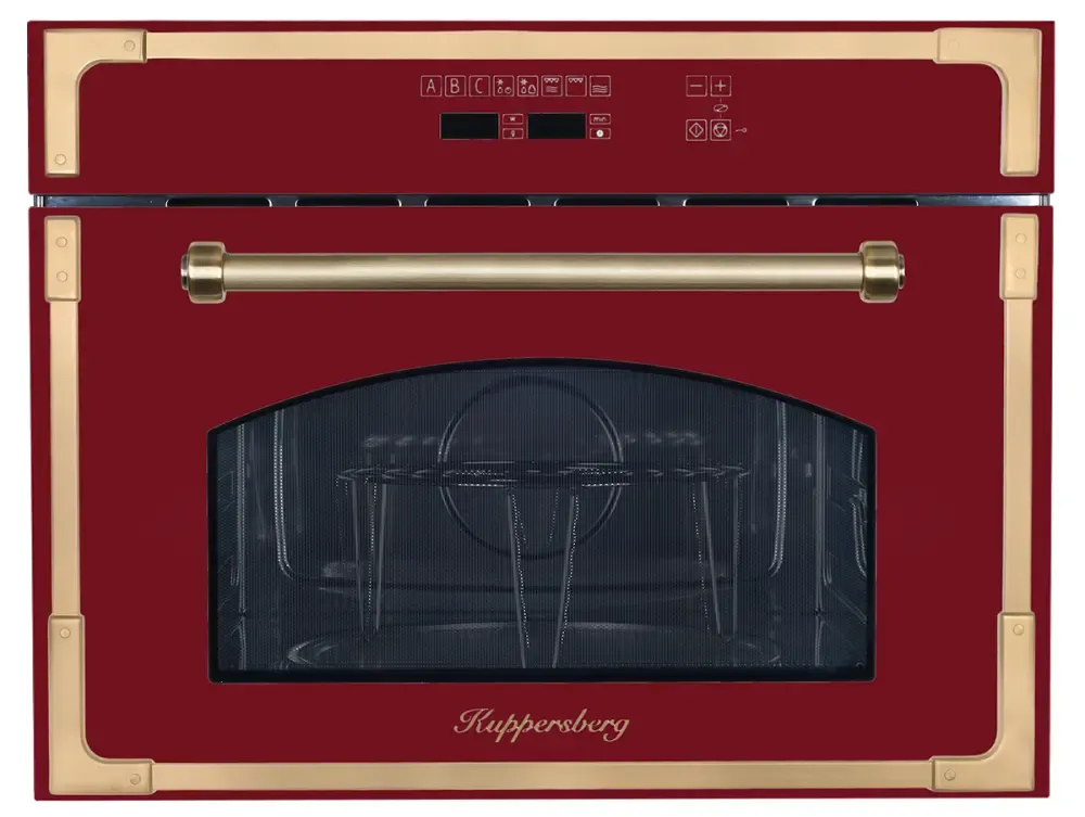 Оригинальный дизайн встраиваемой микроволновой печи RMW 969 BOR впечатлит сторонников нестандартных решений. Модель бордового цвета с бронзовой металлической фурнитурой и откидной дверцей станет украшением любой классической кухни. Стоит оценить и основные полезные функции агрегата: внутренняя отделка нержавеющей сталью; 11 автоматических программ при 6 уровнях мощности; сила микроволн от 200 до 1000 Вт; эффективная разморозка продуктов как автоматического, так и ручного типа; использование гриля мощностью 1550 Вт; наличие большого поворотного стола диаметром в 320 мм. Благодаря специальным сенсорам, можно установить надежную блокировку программ от детей.