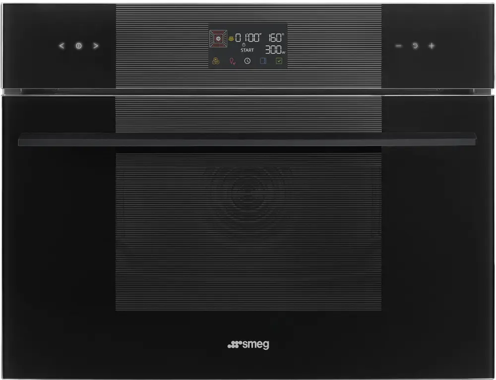 Компактный многофункциональный духовой шкаф, комбинированный с микроволновой печью, ширина 60 см, высота 45 см, 12 функций, стекло Deep Black (чёрное).