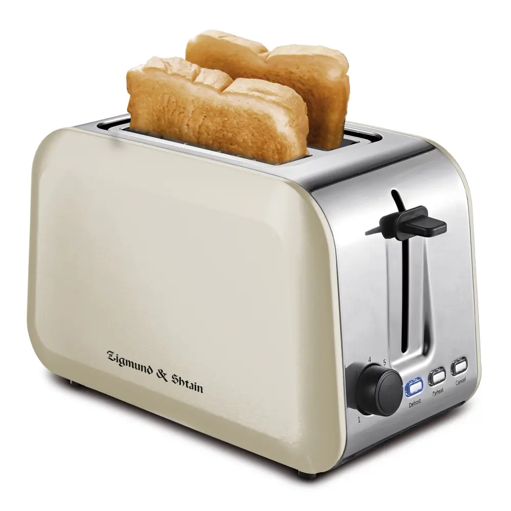 Элегантный тостер в ретро стиле предназначен для быстрого подогрева, приготовления или размораживания тостов. 7 степеней поджаривания позволяет приготовить тосты так как вы любите Устройство оснащено двумя слотами. Тосты «выпрыгивают» из них сами Технические характеристики: Мощность 950Вт Номинальное напряжение: 220-240В, 50/60Гц Количество режимов работы: 3 (поджаривание/разогрев/размораживание) Регулировка поджаривания: 7 степеней Тип управления: механический Автоматический выброс тостов: да Съемный поддон для крошек: да Материал корпуса: сталь Габаритные размеры: 30,5 Х 18 Х 20см Вес (Нетто/брутто) 1,18/1,63 кг Длина шнура: 80 см Цвет: бежевый/стальной