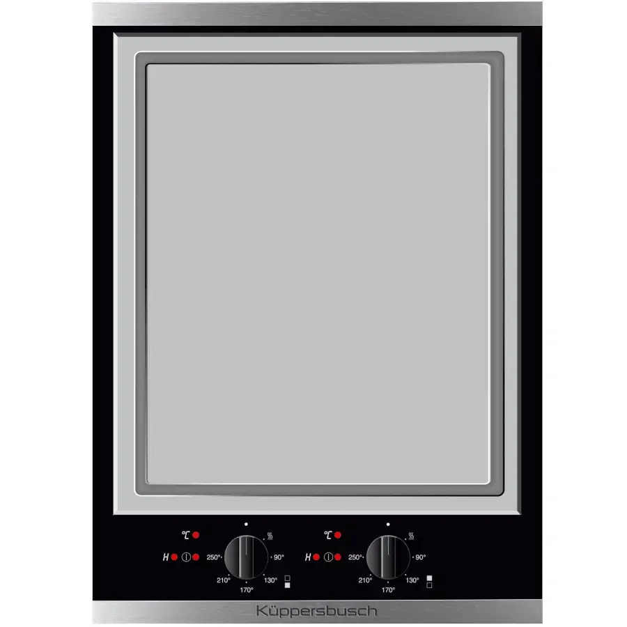 Оснащение: - Электрическая варочная палень TEPPAN - Поворотные переключатели спереди (черные или сталь) - 2 отдельных, настраиваемых зоны гриля - Твердая хромированная поверхность гриля (толщина: ≈ 8 мм) в обрамлении из стеклокерамики - Регулирование температуры в диапазоне 70-250°C - Индикация остаточного тепла - Функция "поддержания тепла", ок. 60°C - Полезная площадь панели Teppan Yaki: 354 x 296 мм - Профили из нержавеющей стали для соединительной планки VarioLine (Акс. № 1130)
