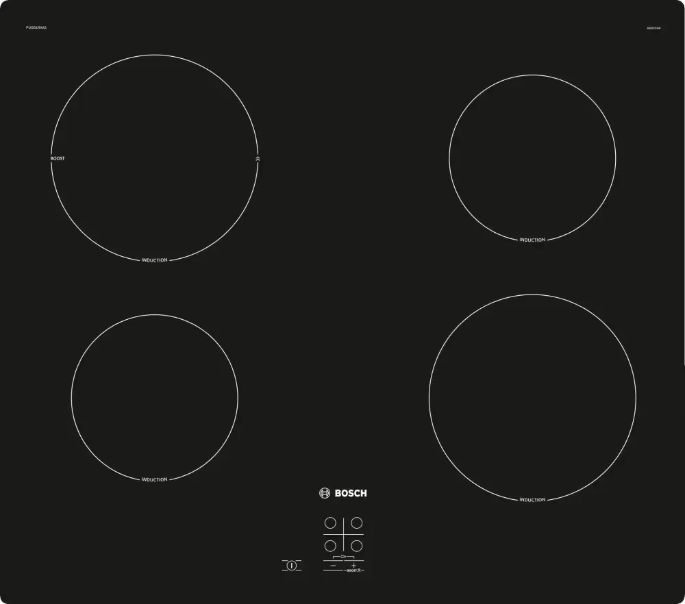 Индукционная варочная панель Bosch PUG61RAA5E Serie 2 представляет собой четырехконфорочное устройство, выполненное в черном цвете. Варочная поверхность изготовлена из стеклокерамики, что придает ей элегантный внешний вид и упрощает уход. Управление панелью осуществляется с помощью сенсоров и системы TouchSelect, что делает процесс взаимодействия с устройством простым и понятным. Панель обладает двумя полезными функциями. QuickStart позволяет начать работу панели сразу после включения, что экономит время. PowerBoost увеличивает мощность нагрева для ускорения процесса приготовления, что особенно удобно, когда нужно быстро довести воду до кипения или поджарить мясо. Безопасность использования панели обеспечивается несколькими функциями. Главный выключатель позволяет мгновенно остановить работу всех конфорок. Защитное отключение при перегреве предотвращает повреждение устройства. Блокировка от детей помогает избежать случайного включения или изменения настроек. Индикация остаточного тепла предупреждает о том, что поверхность еще горячая после использования.