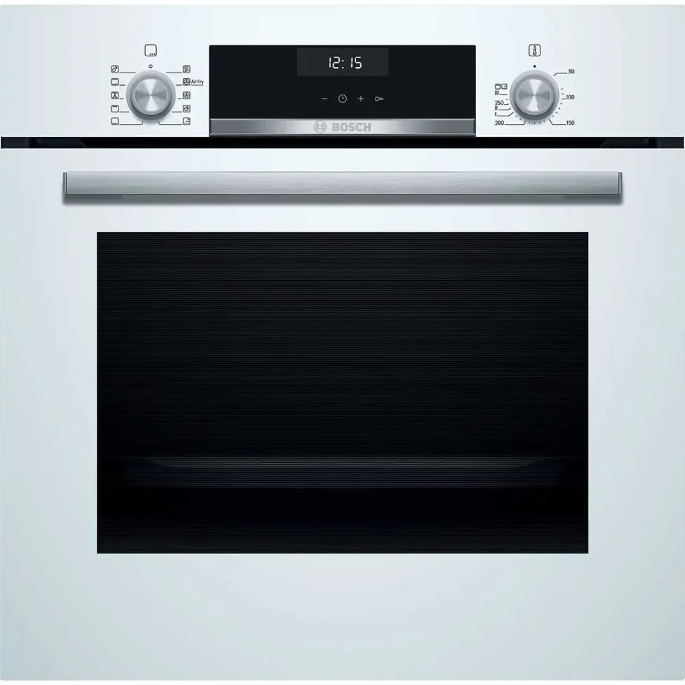 Духовой шкаф объемом 66 лВстраиваемый духовой шкаф Bosch HBJ558YW3Q Serie 6 работает в восьми автоматических режимах. Температура нагрева регулируется в диапазоне от 50°C до 275°C. Удобное управлениеДля выбора настроек прибор оснащен поворотными утапливаемыми регуляторами. На LCD-экран выводится необходимая информация. ВозможностиУстройство оборудовано грилем с увеличенном площадью, в приборе реализована технология «3D-горячий воздух» (конвекция). Блюда получаются сочными с аппетитной корочкой. Нижний и верхний ТЭНы можно использовать отдельно и сочетать вместе в зависимости от блюда. Быстро и безопасноТемпературы 150°С духовой шкаф Bosch HBJ558YW3Q достигает всего за 3 минуты. В модели реализована технология защитного отключения: при длительной работе прибора без изменения настроек подача питания прекращается. Индикатор остаточного тепла покажет, когда духовка достаточно остыла. С помощью кнопки «Ключ» можно заблокировать устройство, чтобы им не воспользовались дети. Дверь сделана из трехслойного стекла, наружная панель нагревается максимум до 40°С. Механизм SoftClose обеспечивает плавное закрытие. Особенности камерыСтенки очищаются с помощью системы самоочистки EcoClean: брызги жира и кусочки пищи на стенках камеры расщепляются во время готовки. Вам останется лишь протереть поверхности влажной салфеткой. Для установки противней предусмотрены телескопические направляющие. Освещение обеспечивает галогеновая лампа.