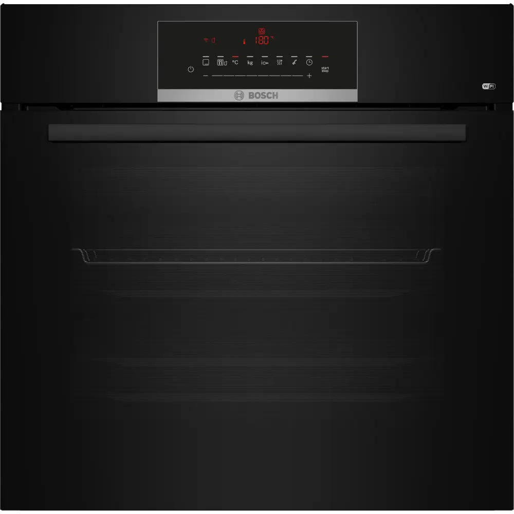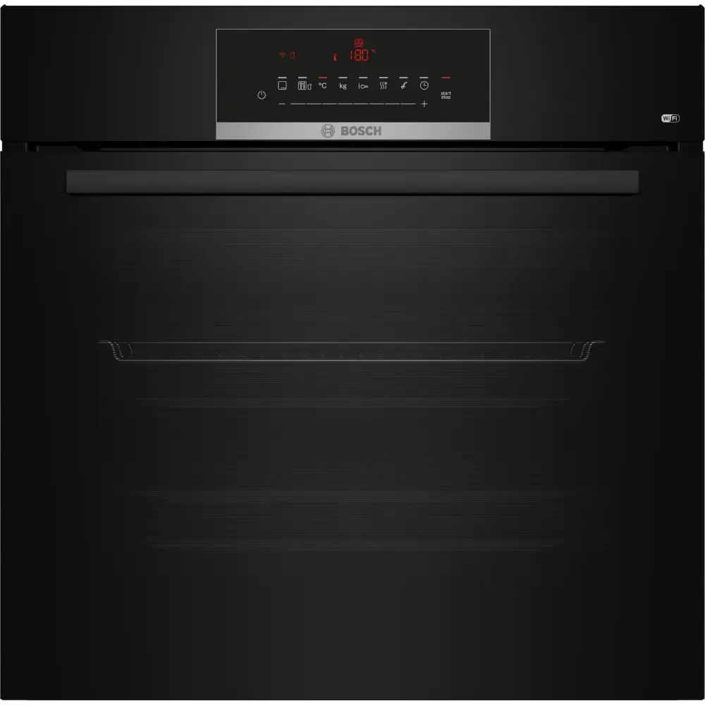 Современная и стильная духовка для любой кухниВстраиваемый духовой шкаф Bosch HBJ559YB6R Serie 8 черного цвета будет органично смотреться в любом интерьере. Объем камеры 67 л позволяет готовить одновременно несколько блюд для большой семьи или праздничного застолья. Удобно и понятноДля управления настройками прибор оснащен сенсорной панелью с дисплеем. Многофункциональные часы обеспечивают точный контроль за приготовлением без пригорания блюд. Опция Home Connect предназначена для соединения духовки со смартфоном или планшетом и позволяет управлять настройками удаленно. Полет фантазииВ устройство заложены 12 режимов нагрева, в числе которых — объемный горячий воздух, верхний и нижний жар, гриль, конвекция. В систему «Автопилот» включены 40 автоматических программ — подбирать температуру и время вручную не понадобится. Без лишних хлопотВ духовом шкафу Bosch HBJ559YB6R реализована пиролитическая система очистки. При сильном нагреве загрязнения в виде жира и кусочков пищи сгорают до пепла, которые после приготовления достаточно убрать салфеткой. БезопасностьДверь сделана из трехслойного стекла, наружная панель нагревается всего до 40°С, что исключает риск получить термическую травму. Амортизатор SoftClose обеспечивает плавное открытие и закрытие. Предусмотрены функция блокировки от детей и система охлаждения прибора.