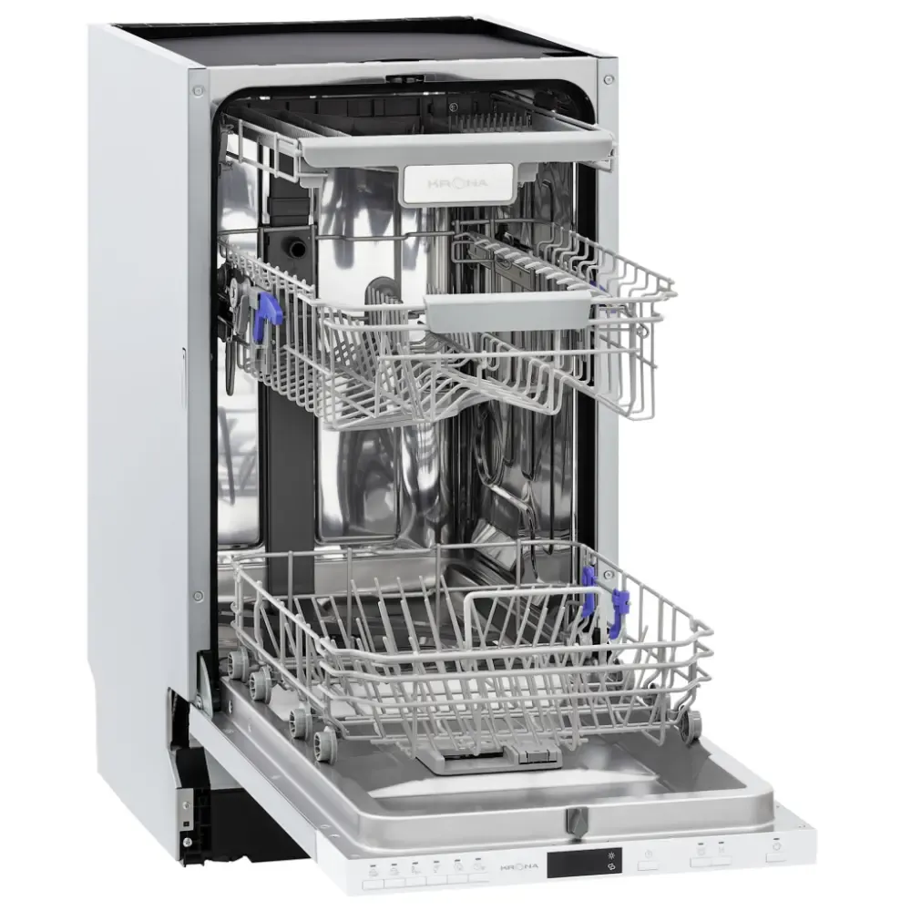 "Посудомоечная машина WESPA шириной встраивания 45 см вмещает 10 комплектов посуды. Модель оснащена электронной защитой от протечек full AquaStop, выдвижным лотком для столовых приборов и регулируемой по высоте корзиной Dual Space, которая позволяет оптимизировать пространство камеры для загрузки посуды большого размера. Удобство эксплуатации обеспечивают 6 программ мойки для разных случаев загрязнения, режим 1/2 загрузки, позволяющий экономить воду и электроэнергию, индикатор окончания цикла мойки ""Луч на полу"", а также функция дополнительной сушки Extra Drying."