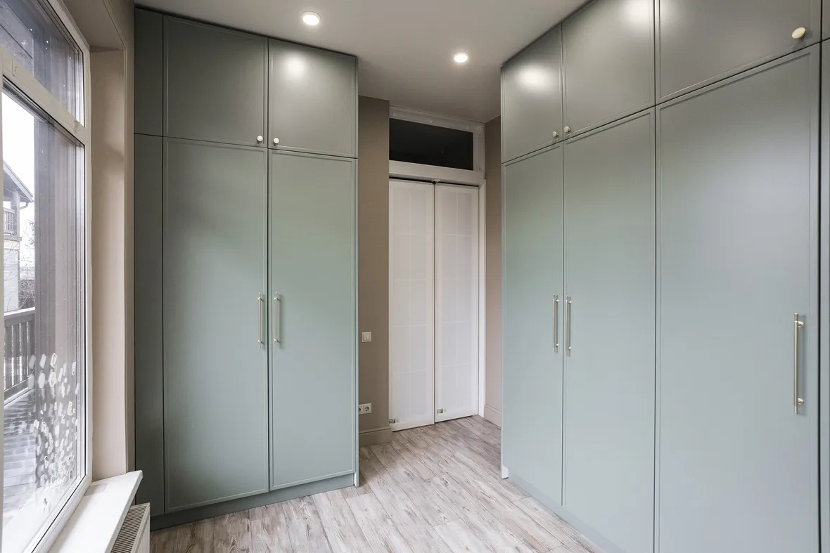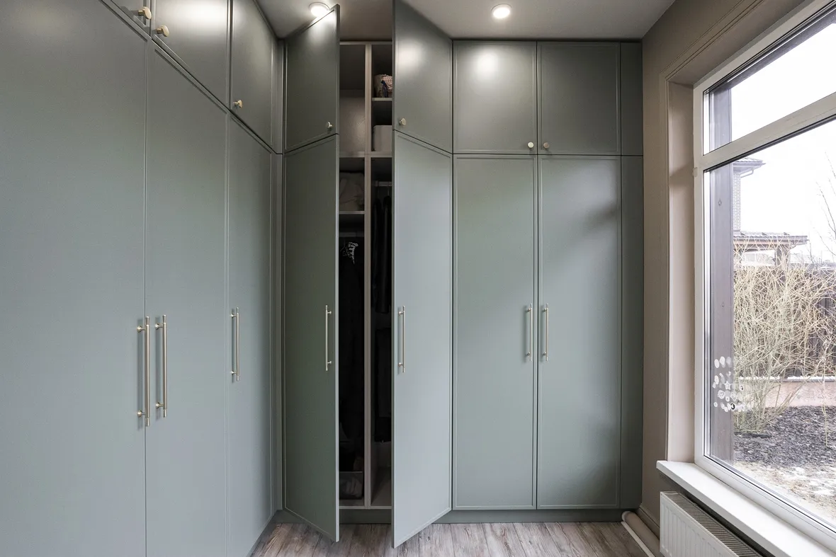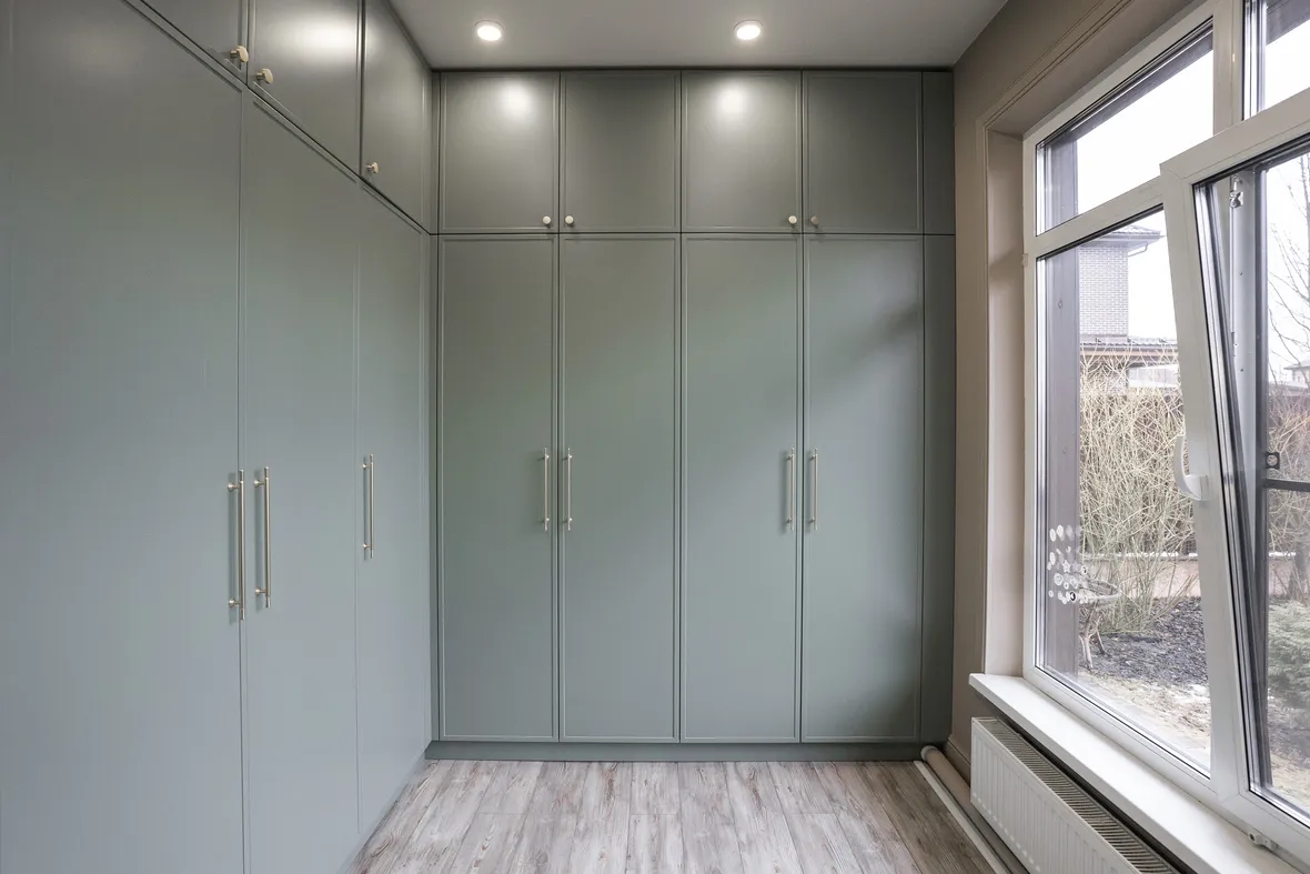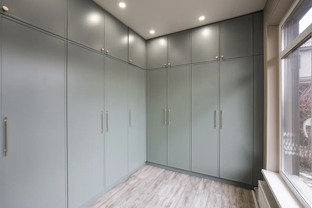 Фасад: Рокси в цвете NCS S 4010-G30Y, Система в цвете NCS S 4010-G30Y Корпус: ДСП 18 мм Дуб Серый камень