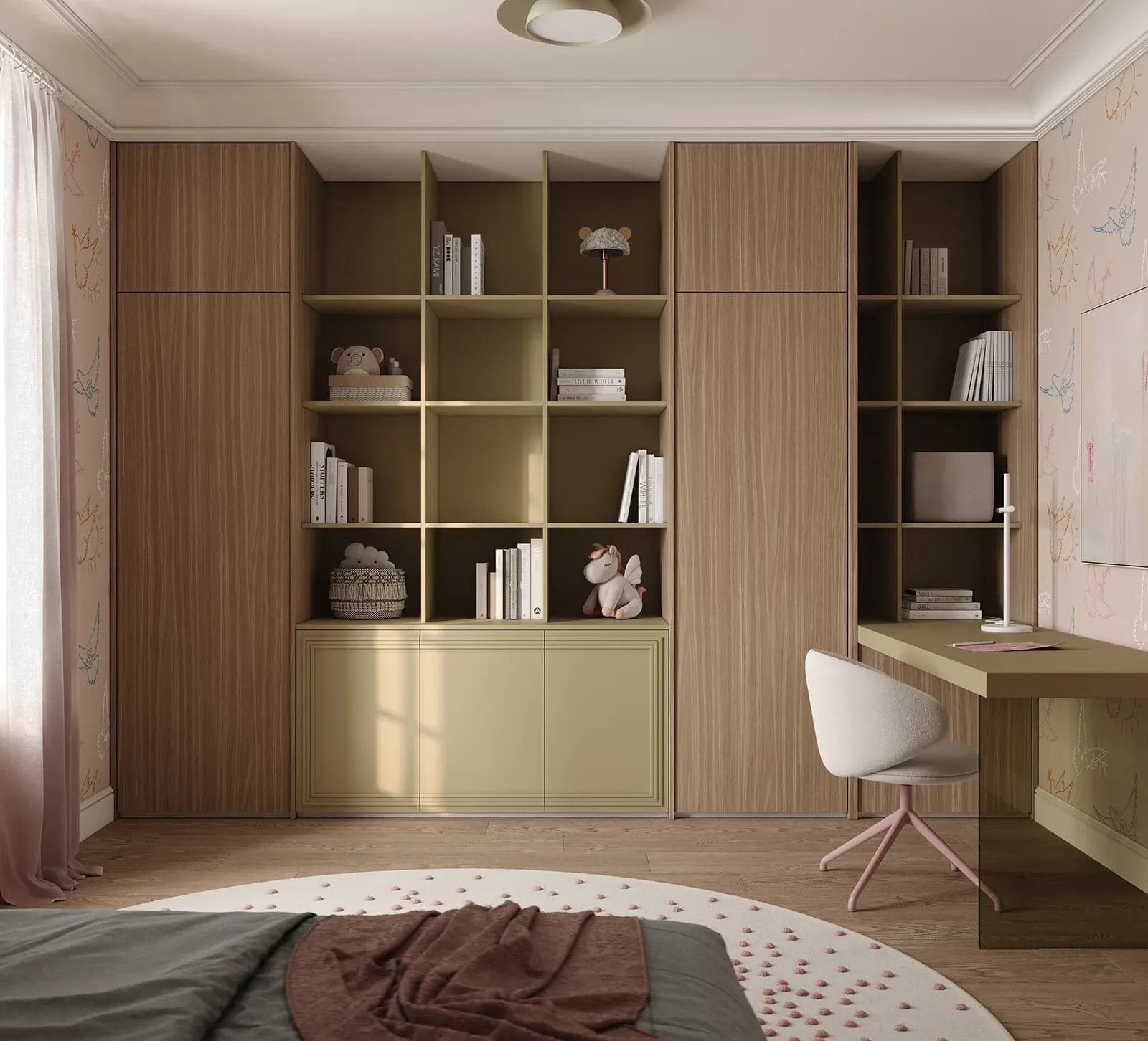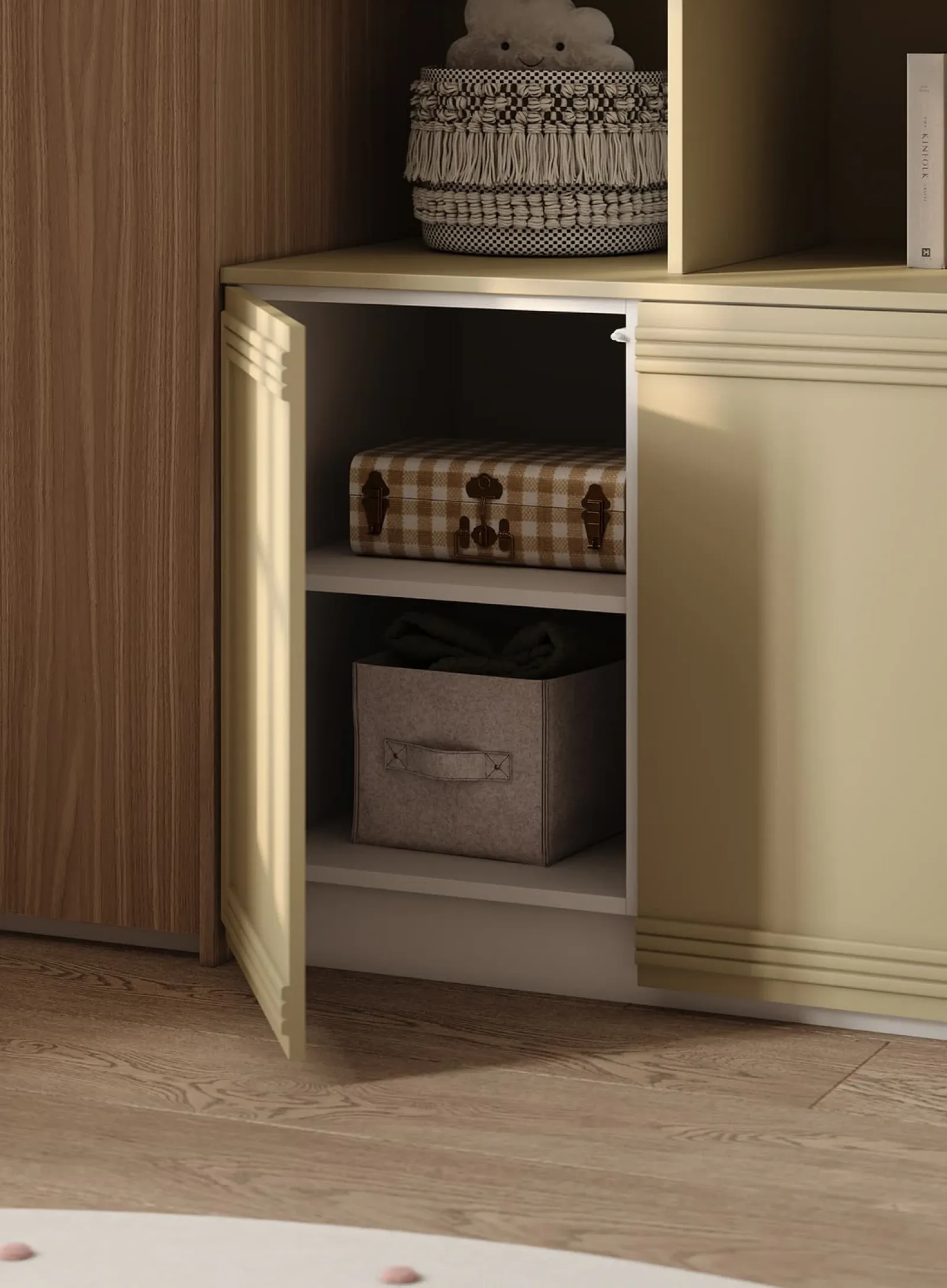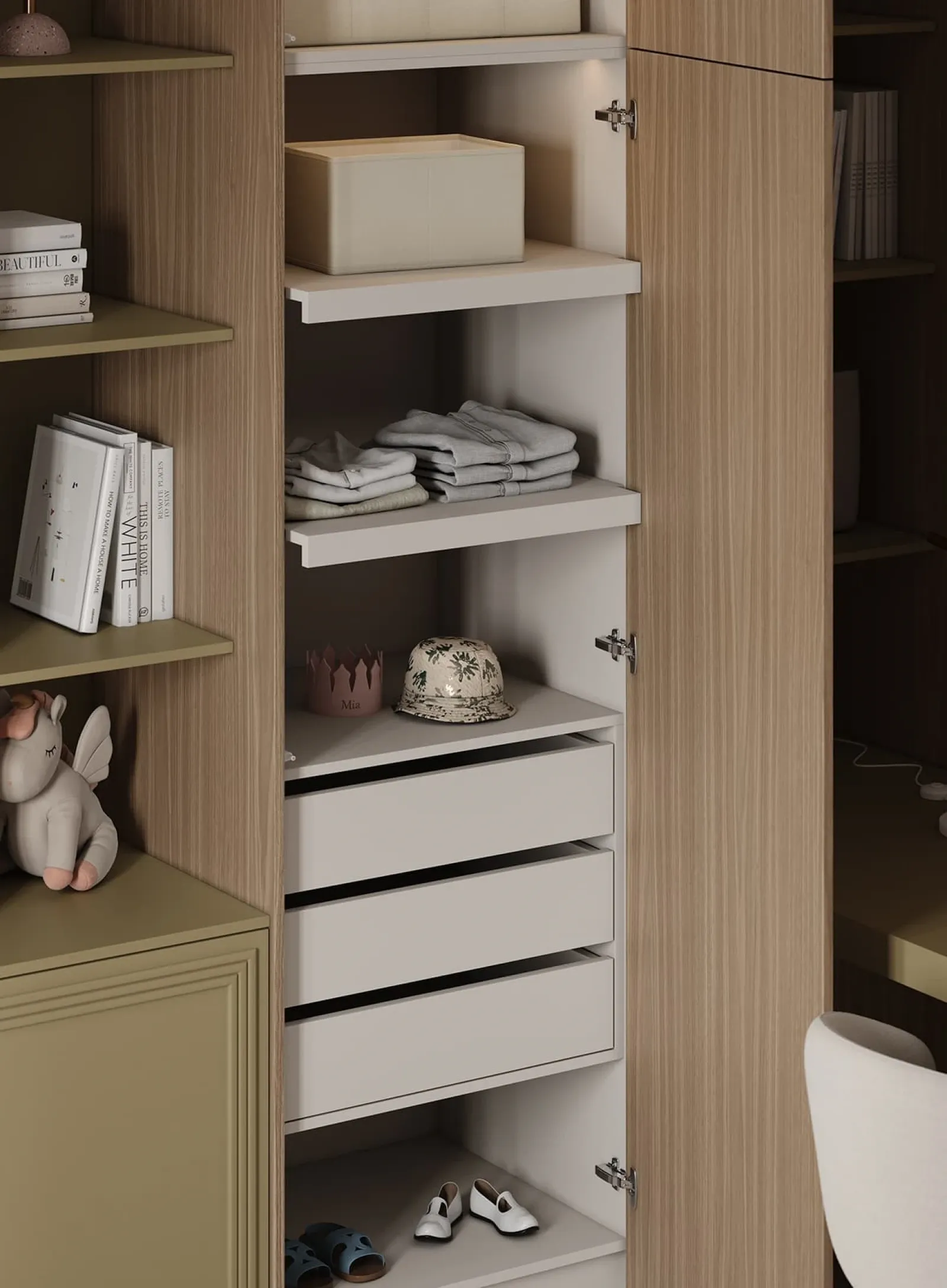 КАРКАС, ПОЛКИ, ВЫДВИЖНЫЕ ЯЩИКИ, ЗАДНЯЯ СТЕНКА ЛДСП / крашеная МДФ, цвет NCS S 3020-G70Y Матовый / ЛДСП, цвет Белый Премиум ФАСАДЫ ЛДСП 18 мм / Т650 Крашеная МДФ, цвет NCS S 3020-G70Y Матовый