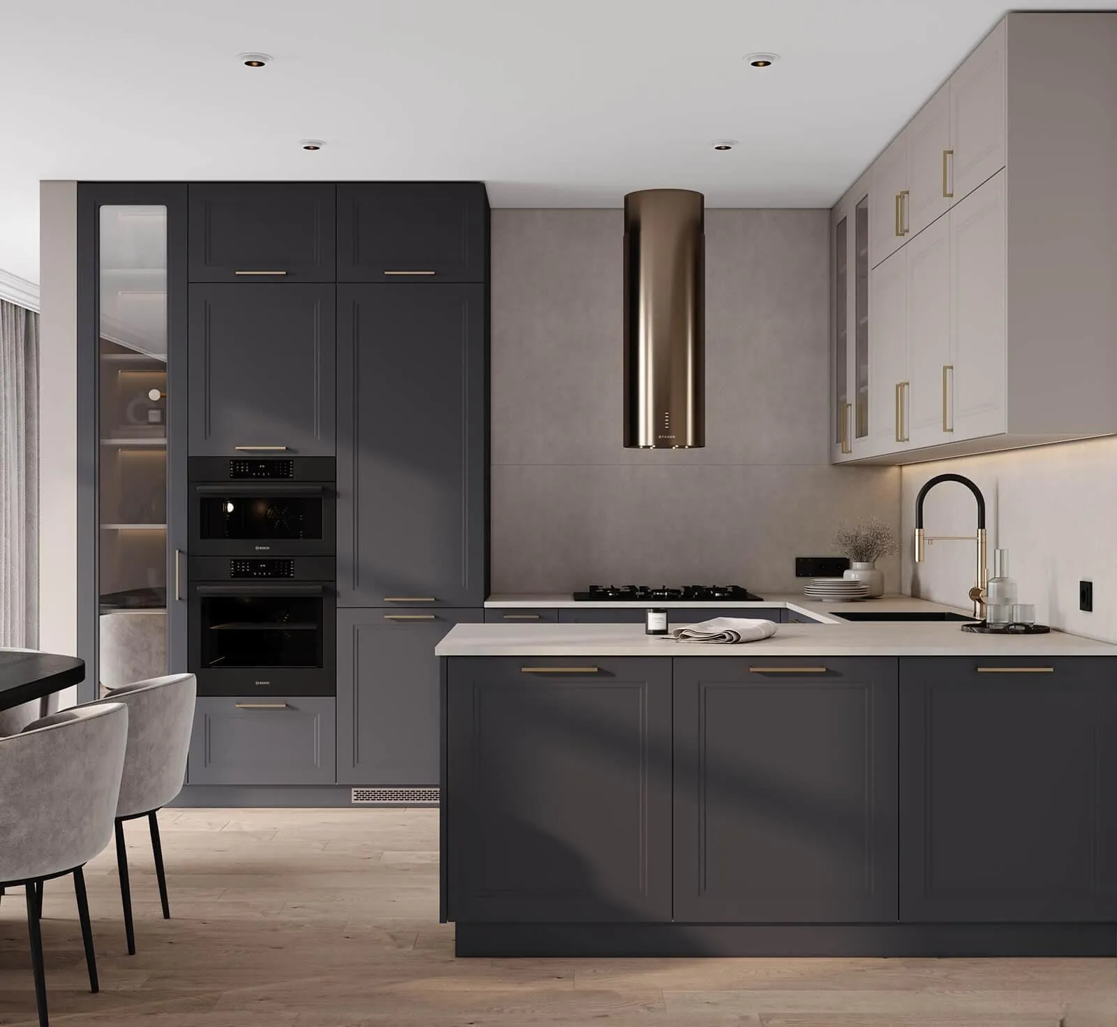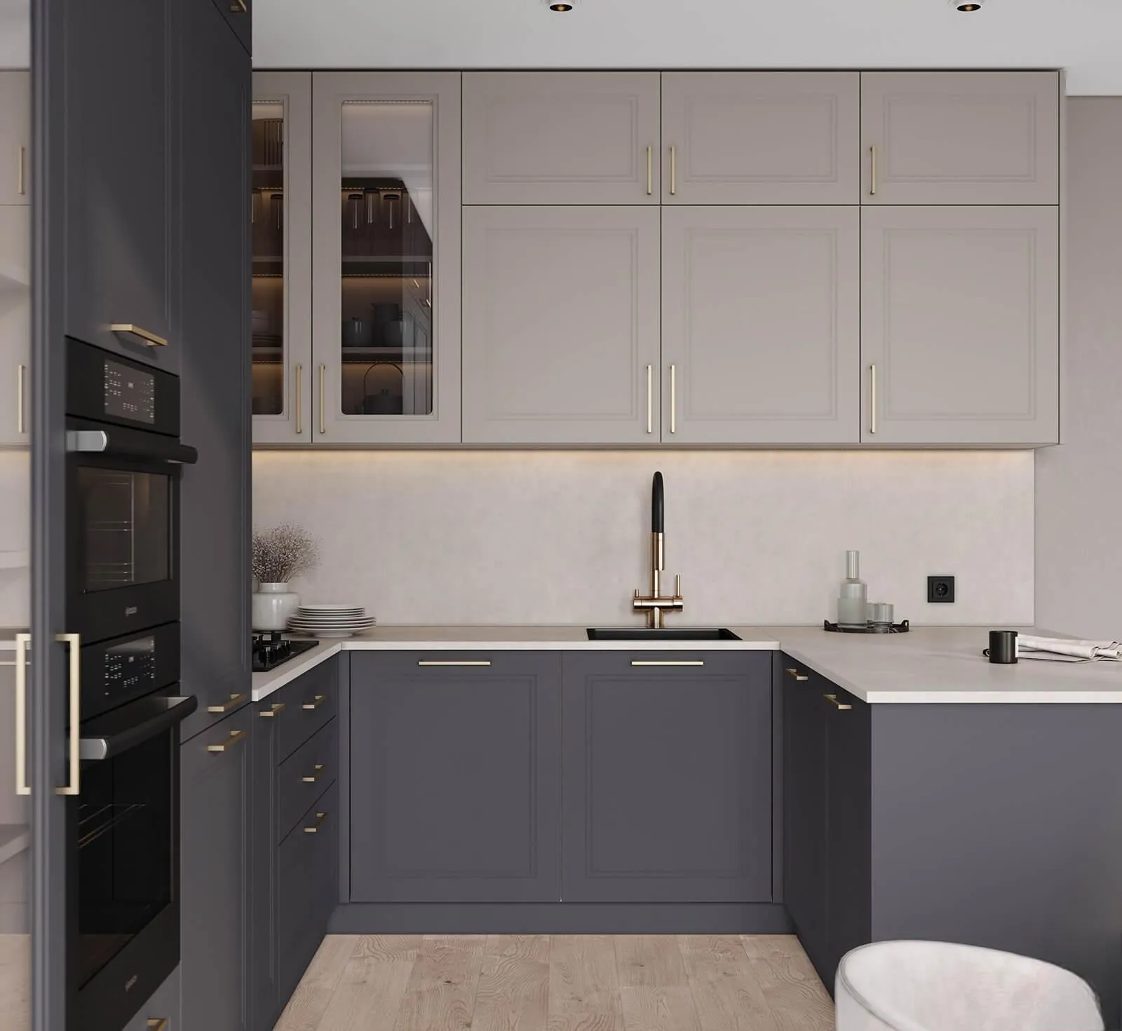 Фасады: Эйвон (МДФ / ПВХ / PET), цвет Ориа Блю / Ангора PET