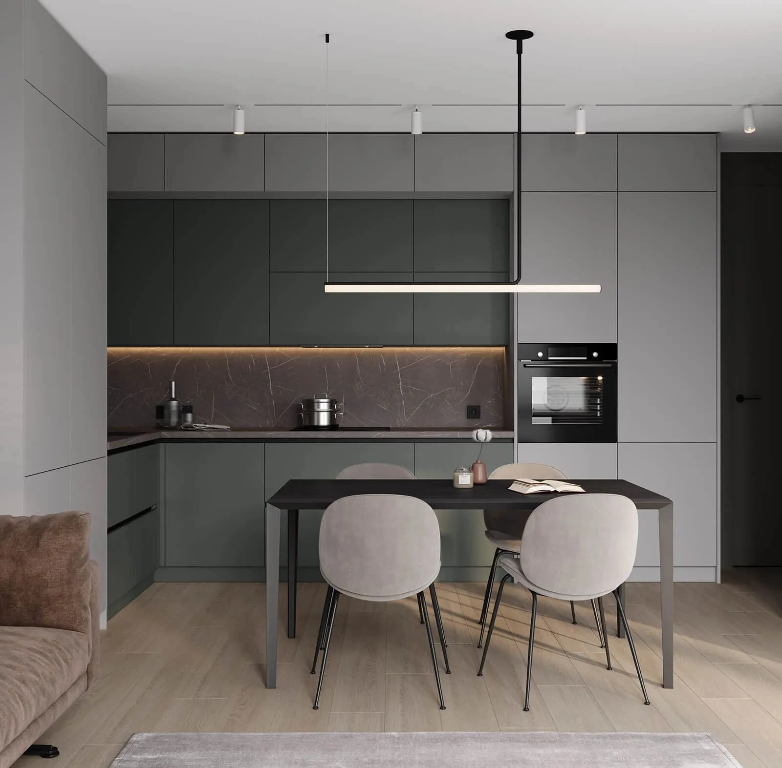 ФАСАДЫ ЛМДФ SUPRAMAT, цвет Форест Супрамат / Пепельный Супрамат СТОЛЕШНИЦА Пластик HPL, 38 мм
