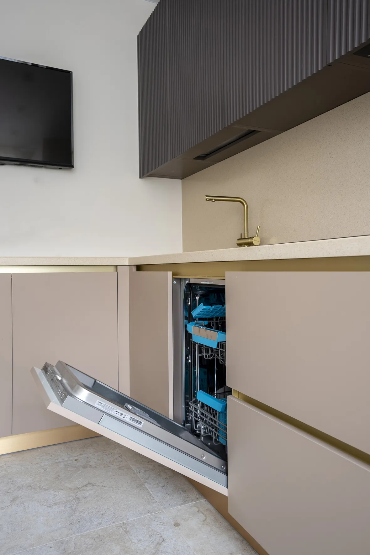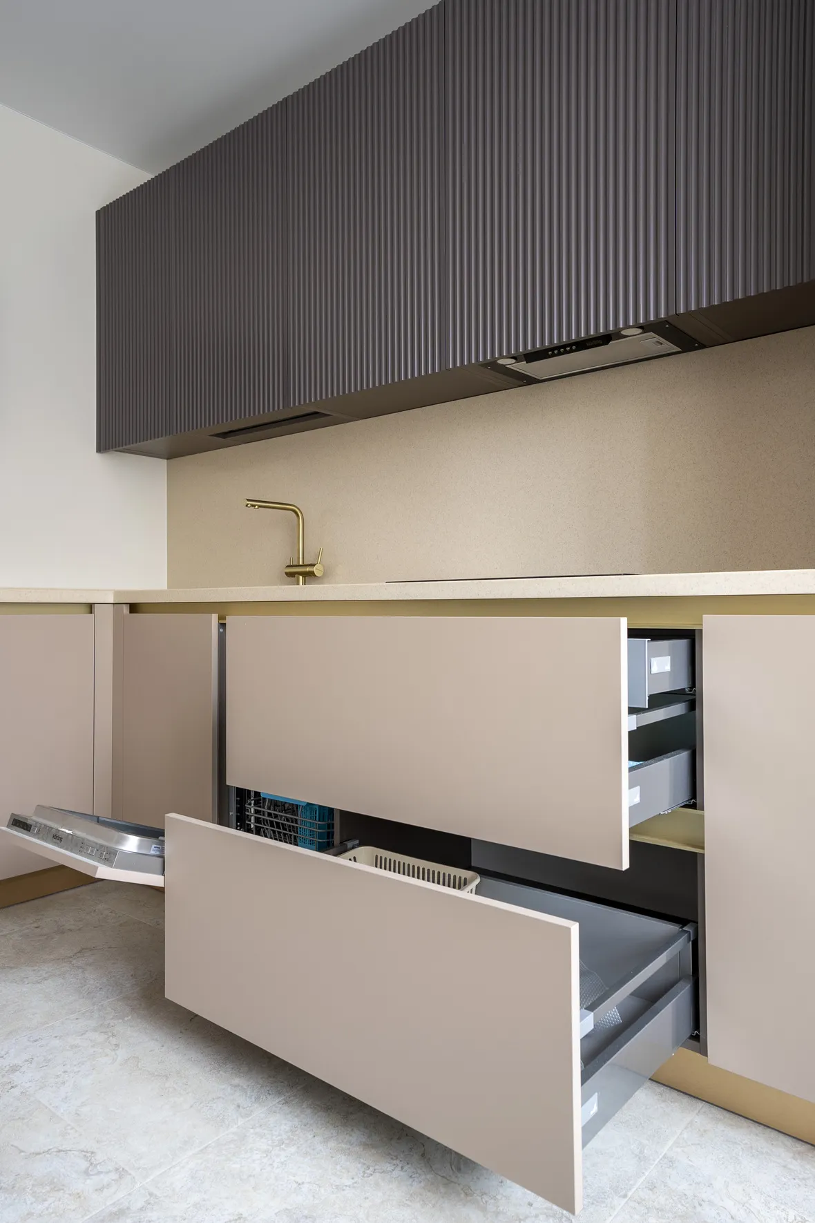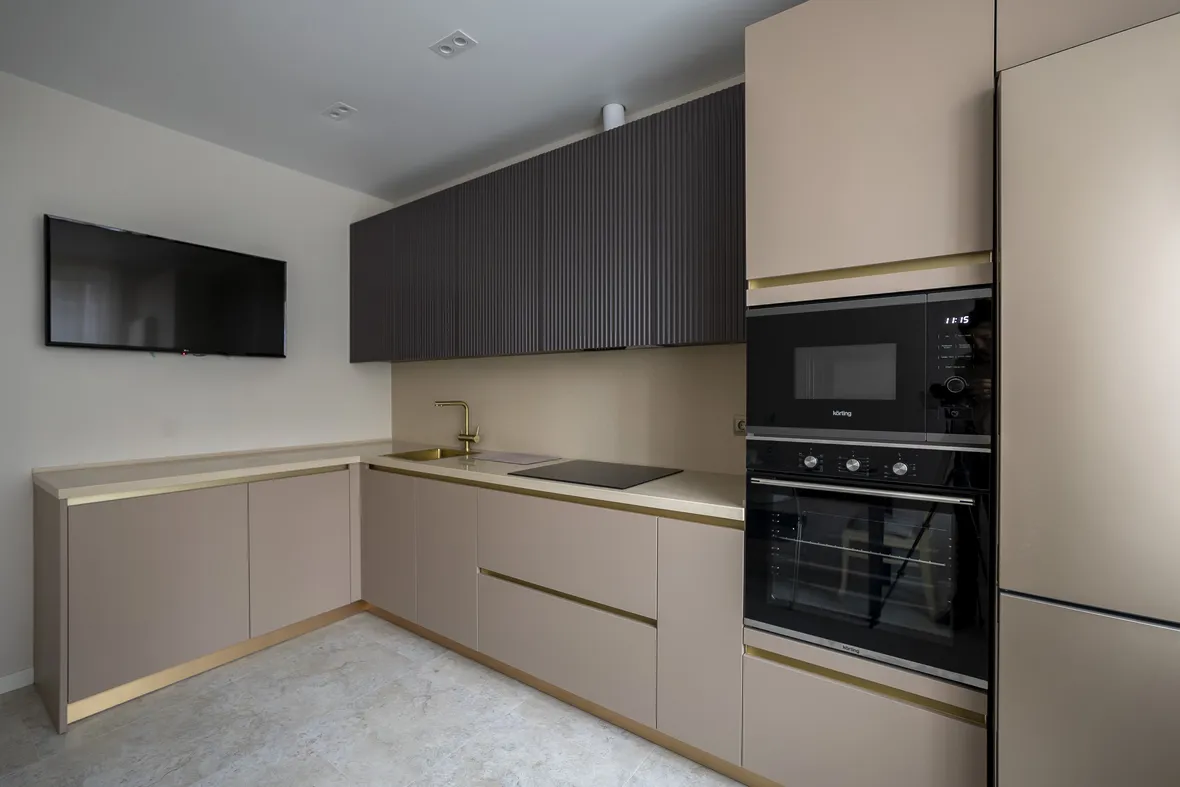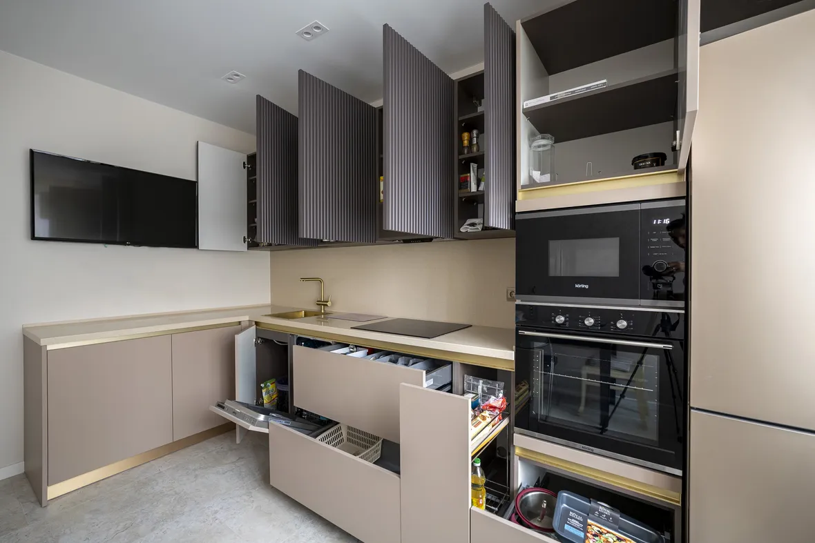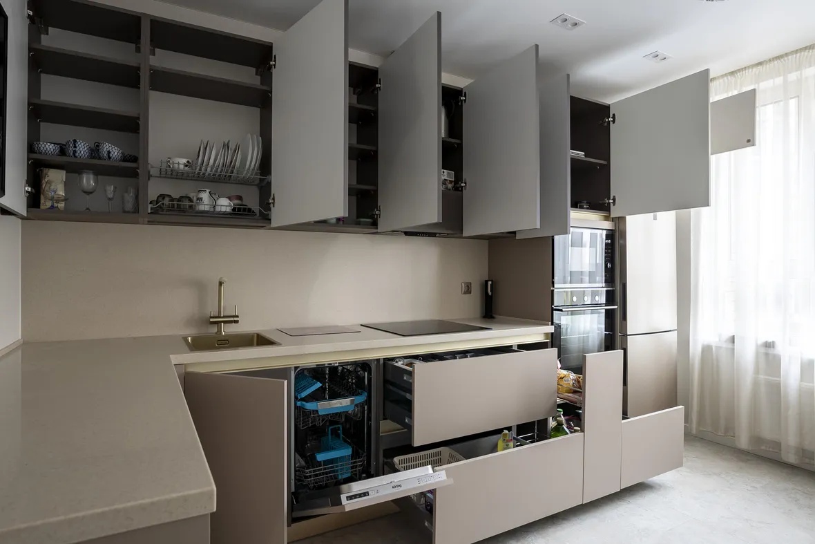 Техника: электрический духовой шкаф, электрическая варочная панель, встроенная СВЧ, встроенная вытяжка, встроенная ПММ - KORTING