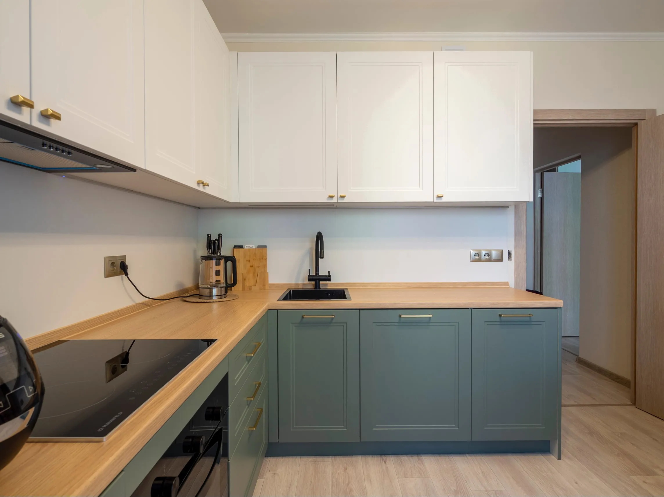 Фасады: МДФ ПВХ, Эйвон, Селадон / МДФ Эмаль, Система, Белый PET