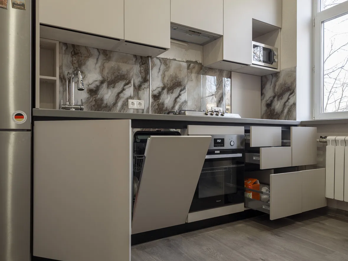 Техника: вытяжка - MAUNFELD, мойка - OMOIKIRI