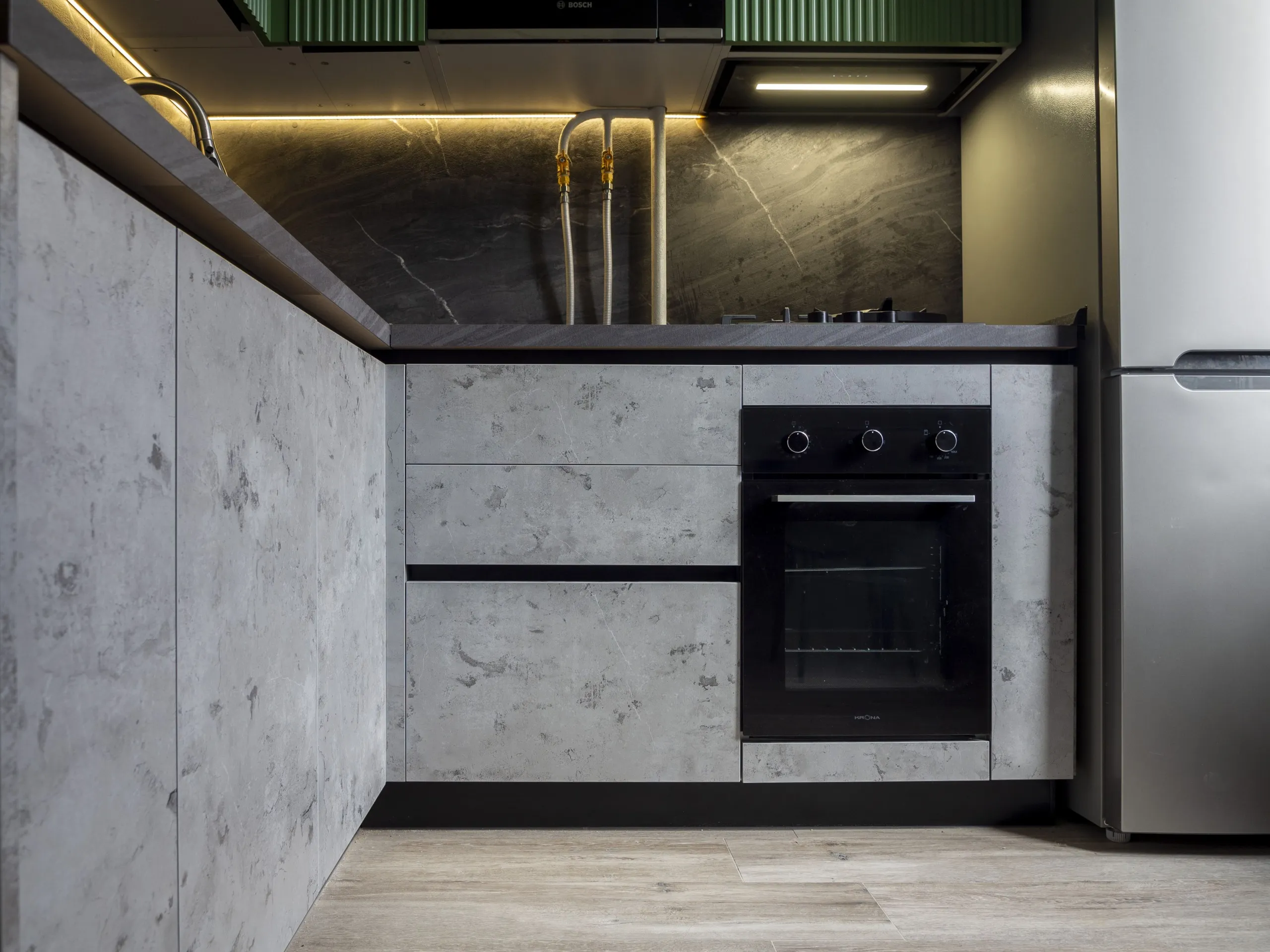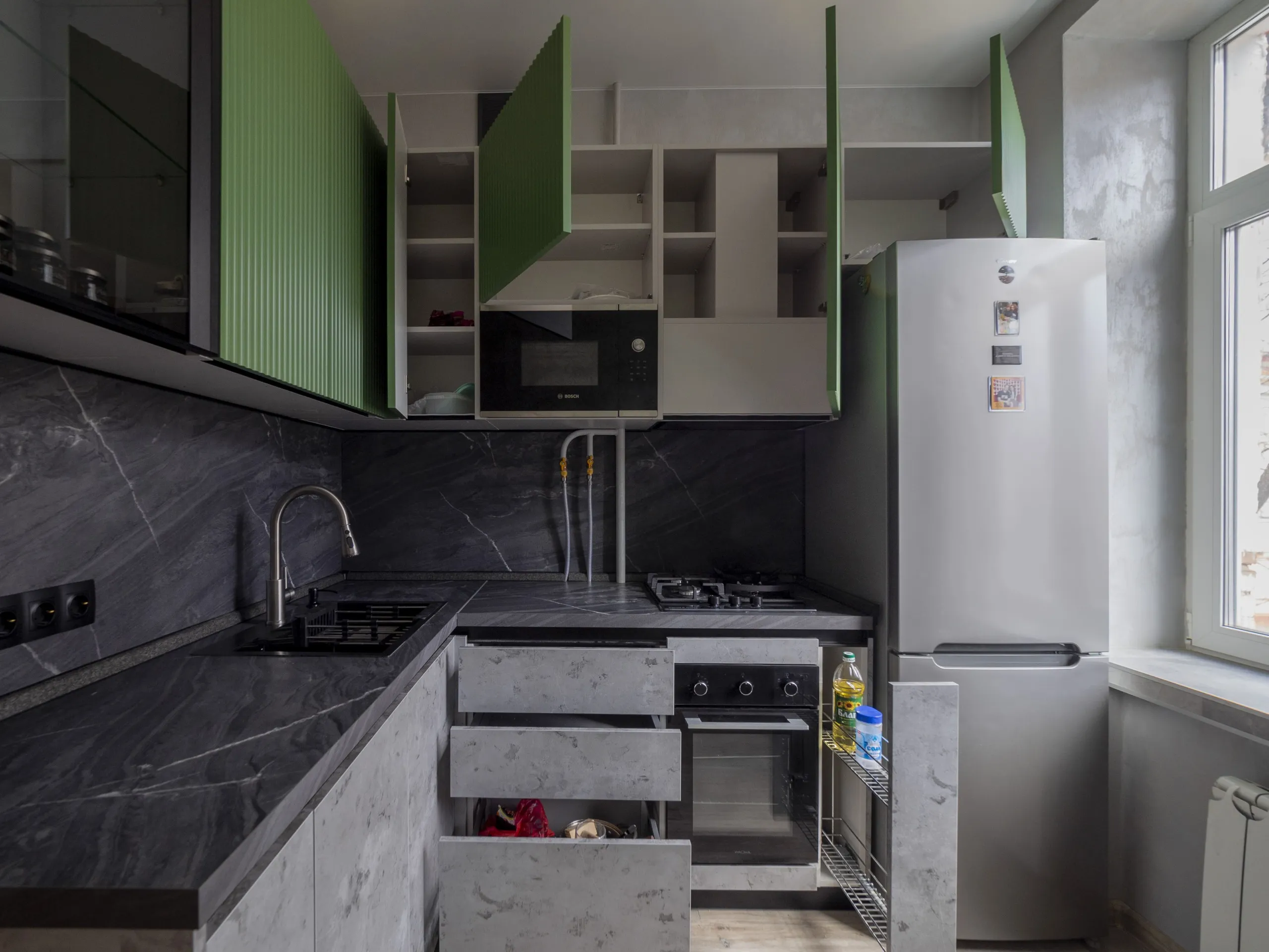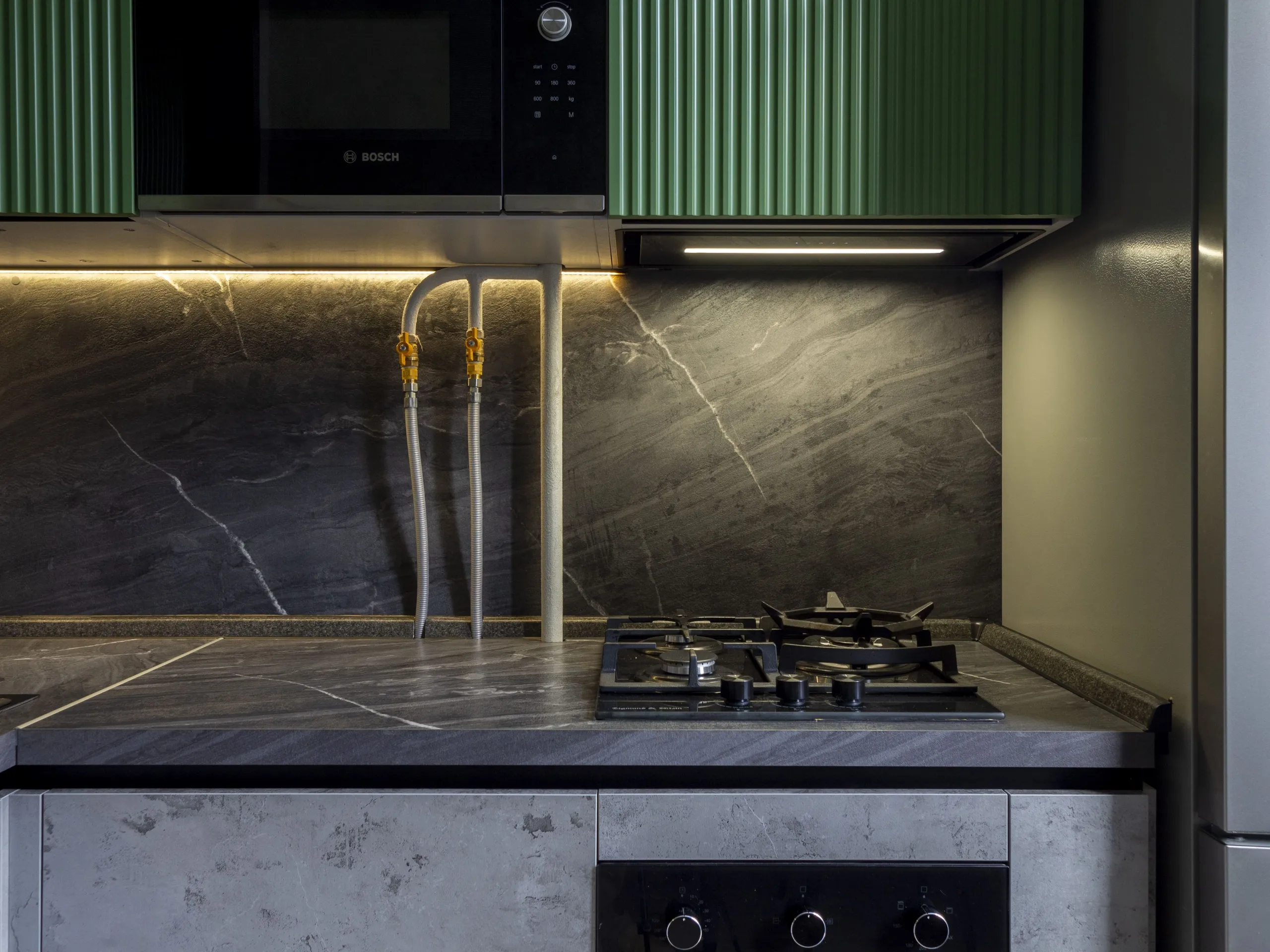 Фасад: Т641 в цвете RAL 6011, Синкрон в цвете Аргенто