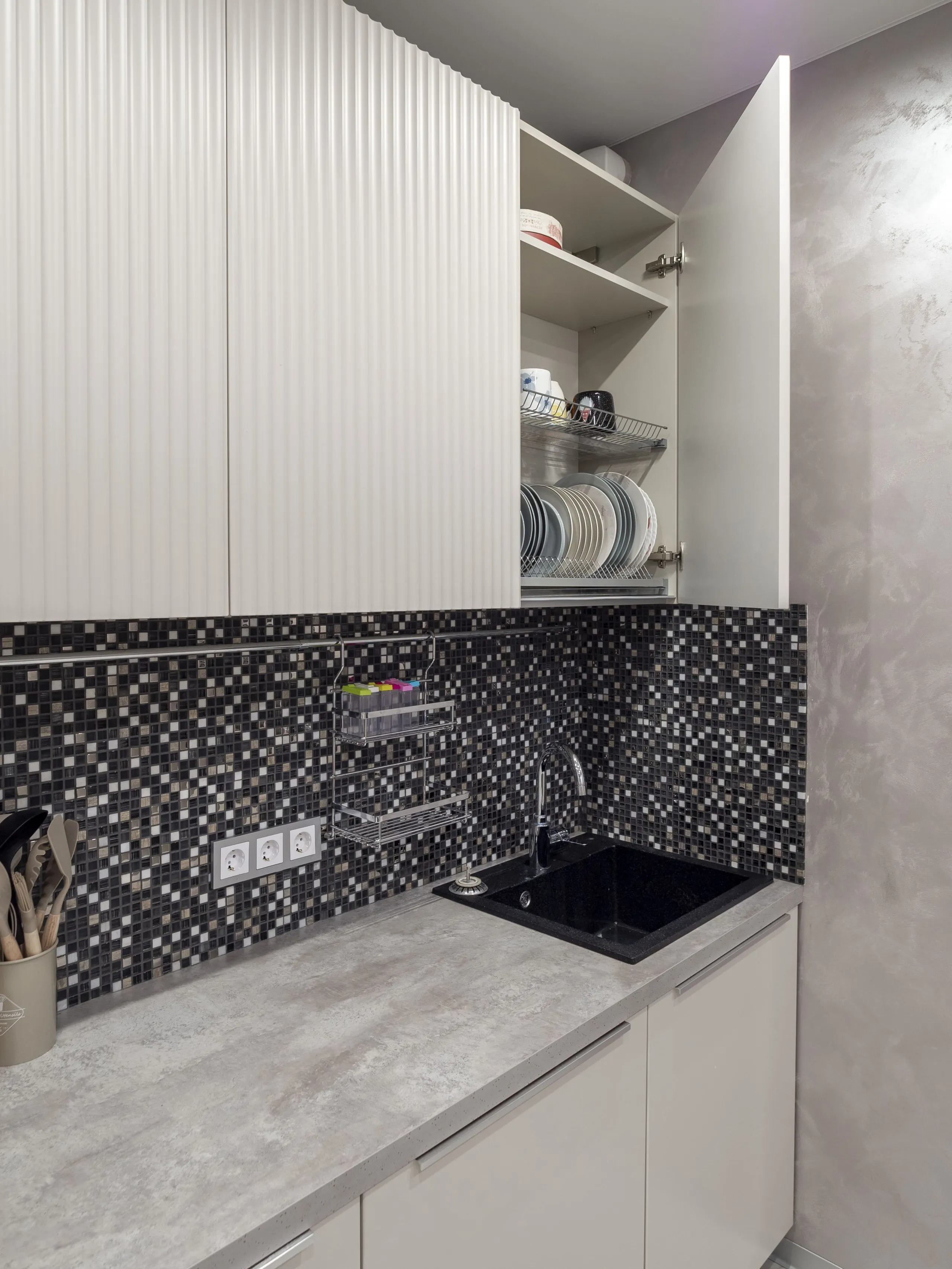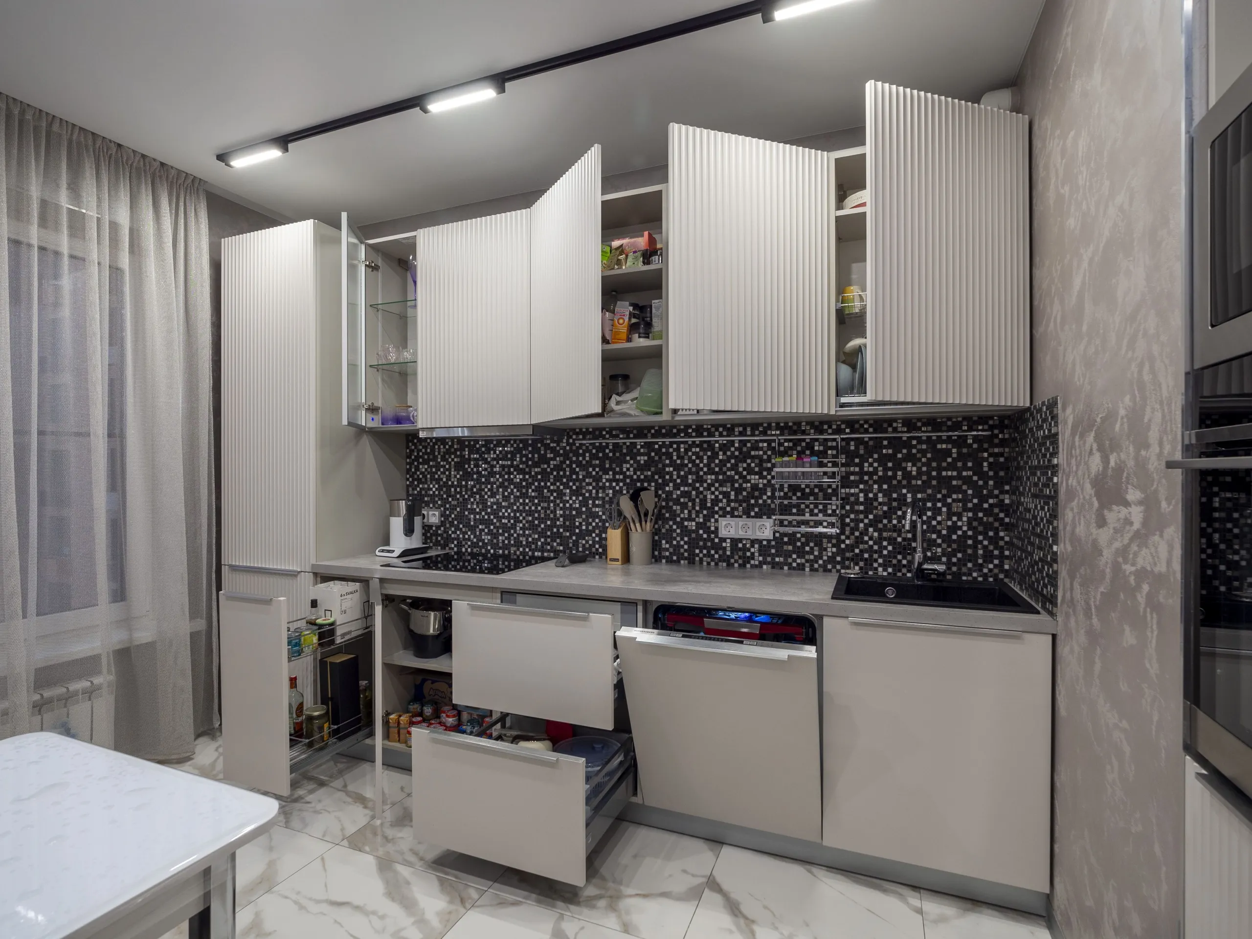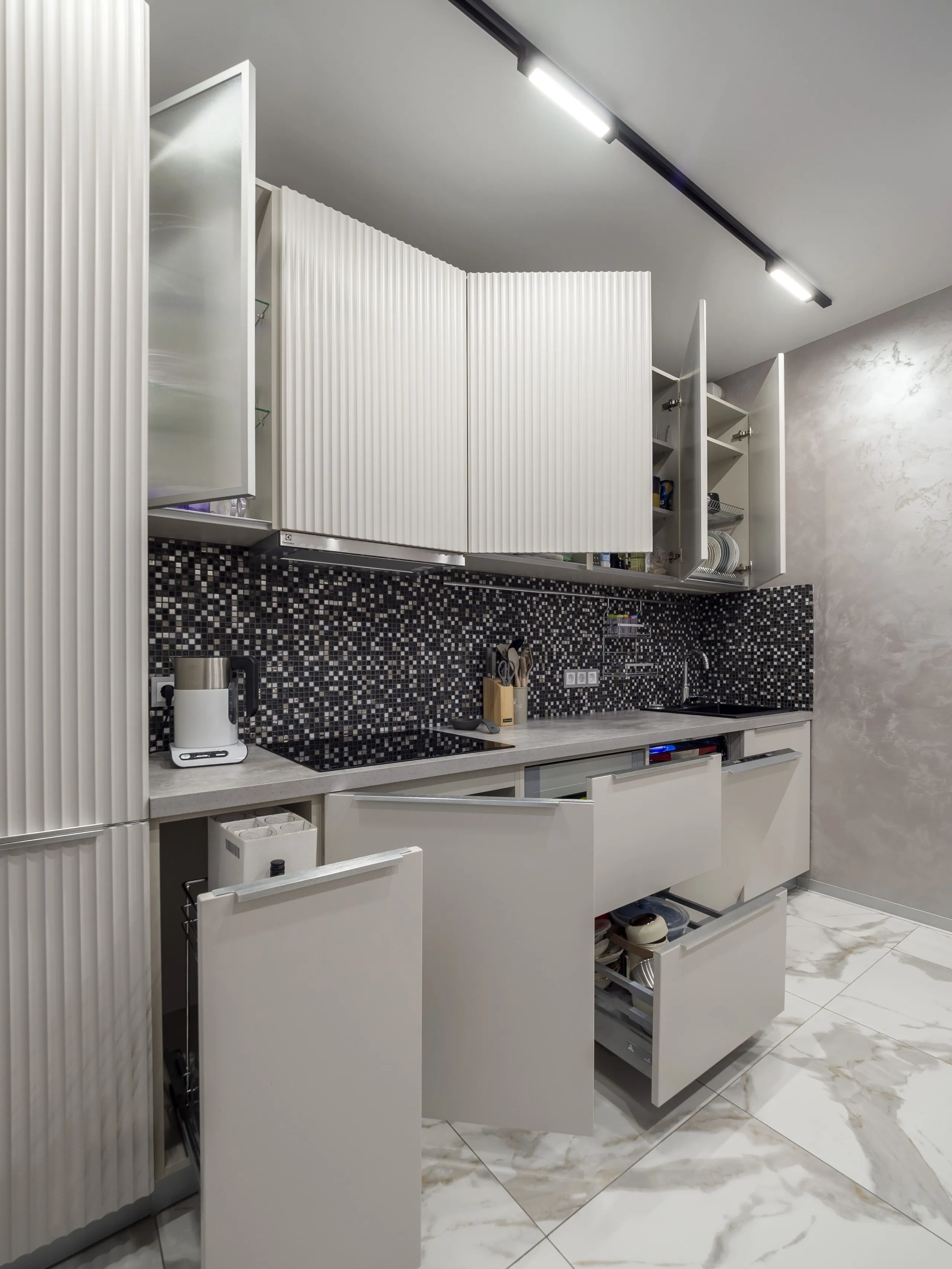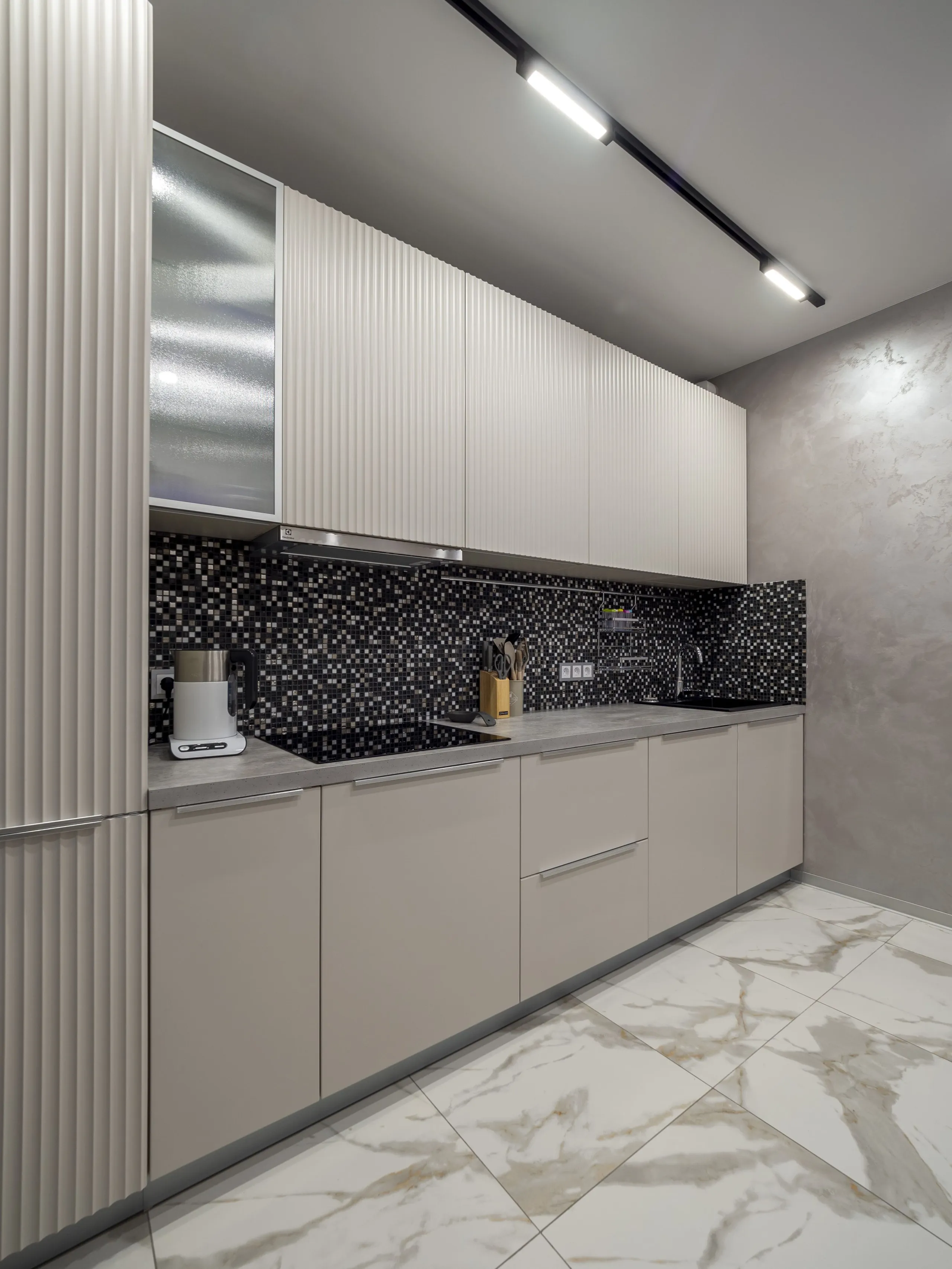 Витрина: Alum A1 в цвете Серебро, стекло Тисненое-2