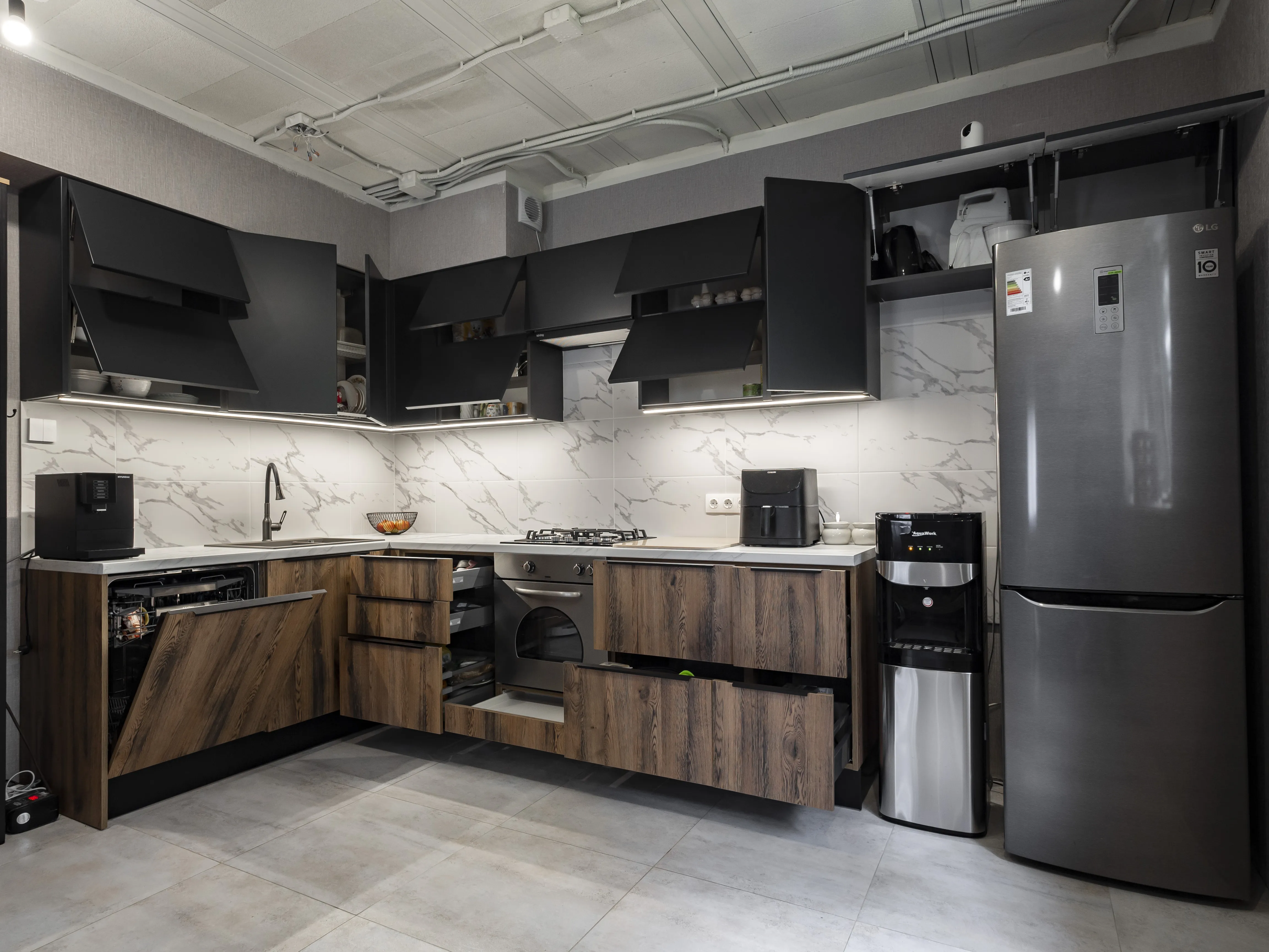 Фасад: Тимбер в цвете Аттик; Краска в цвете RAL 7016